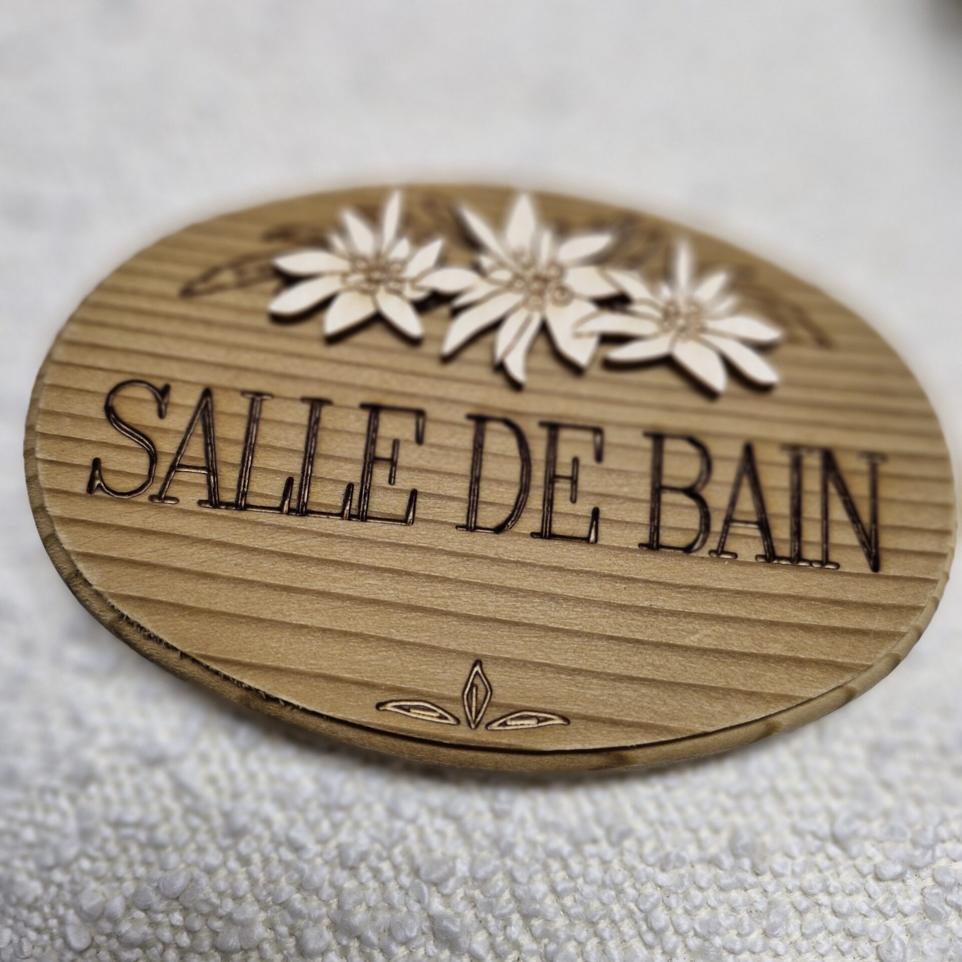PLAQUE DE PORTE SALLE DE BAIN EN BOIS OVAL DECOR EDELWEISS