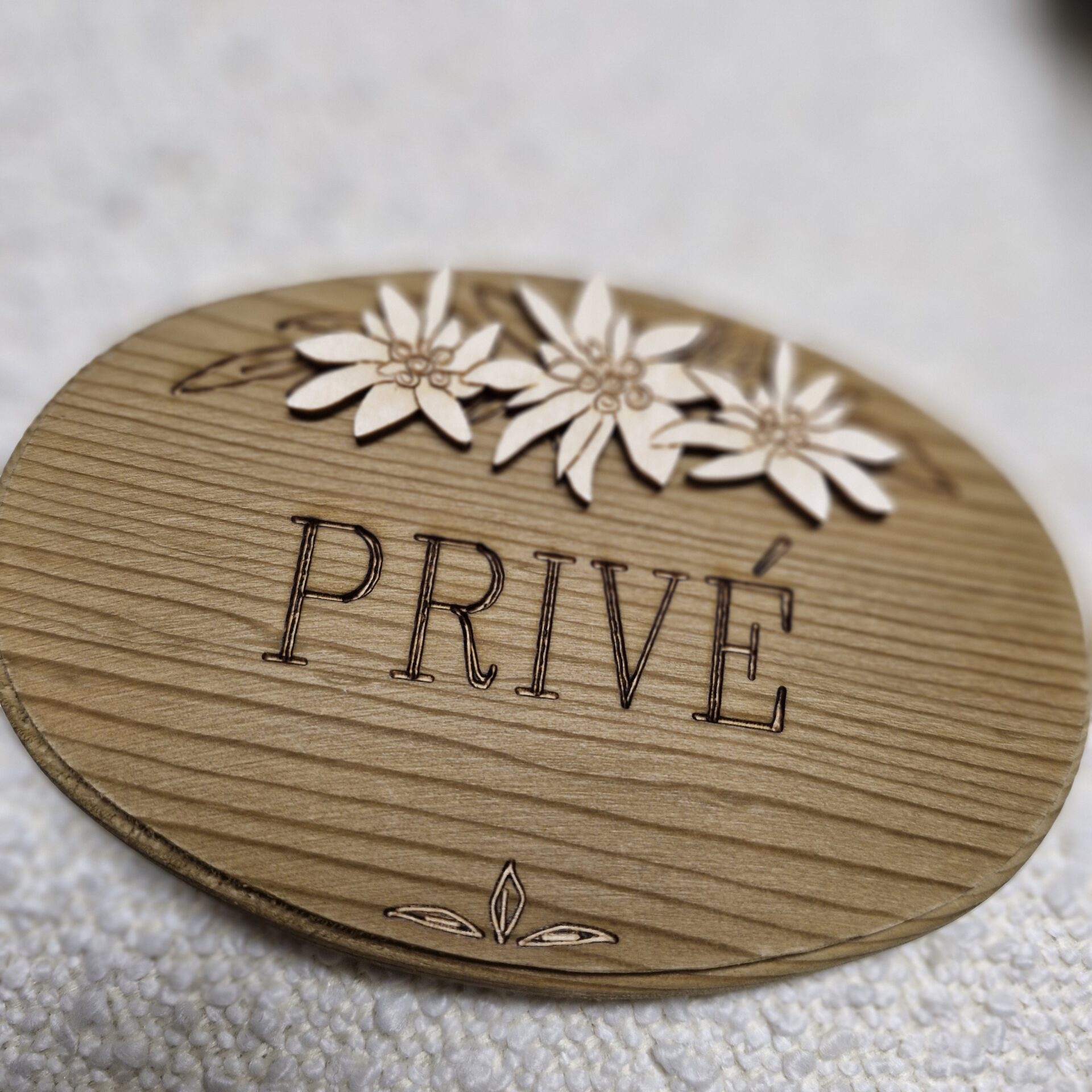 PLAQUE DE PORTE PRIVE EN BOIS OVAL DECOR EDELWEISS