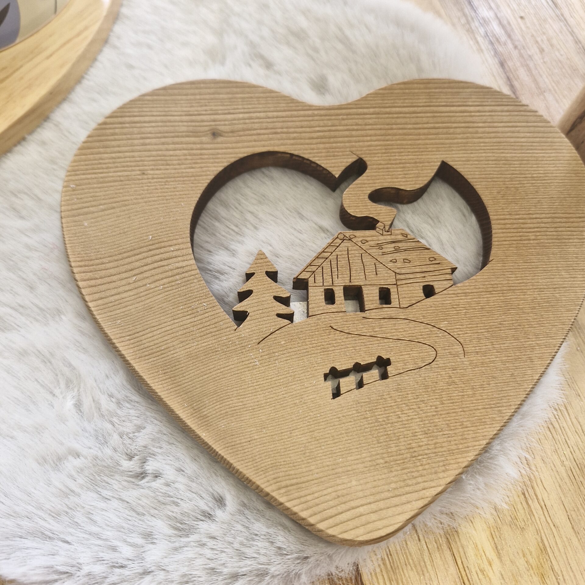 DESSOUS DE PLAT COEUR EN SAPIN DECOUPE CHALET