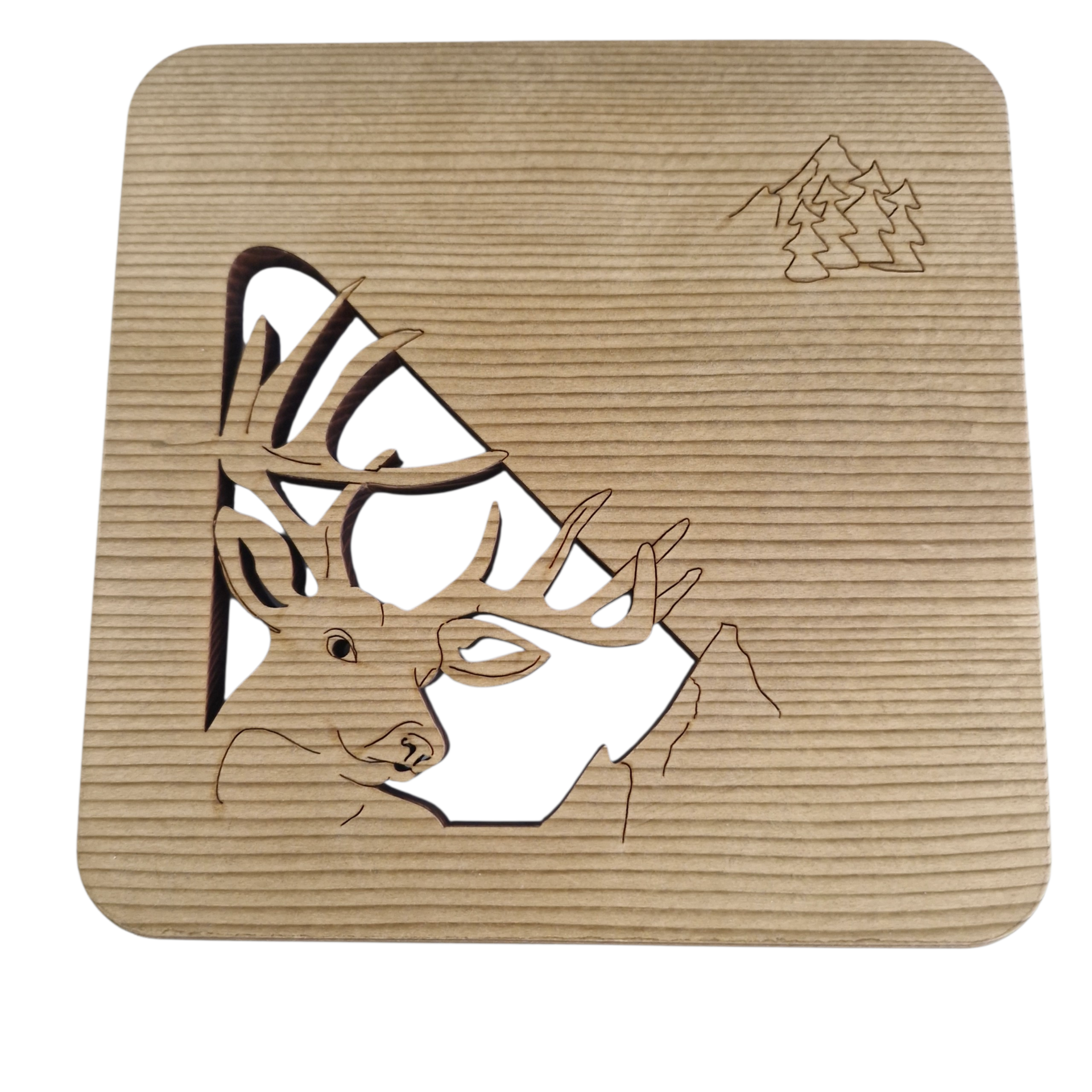 DESSOUS DE PLAT CARRE EN SAPIN DECOUPE CERF