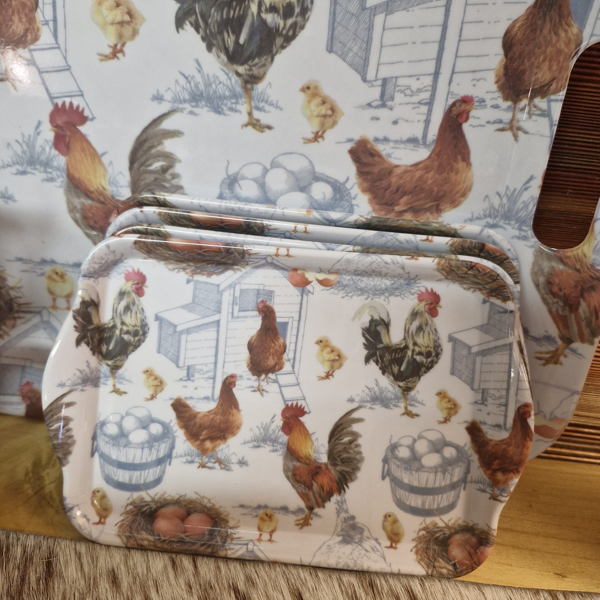 PLATEAU 13X21CM COQS DE FERME FOND BLANC