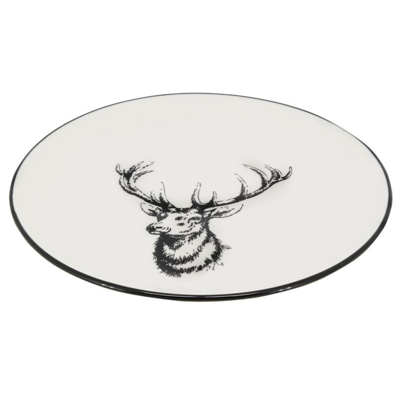 ASSIETTE DESSERT EN PORCELAINE BLANCHE CERF NOIR D19CM LOT DE 6