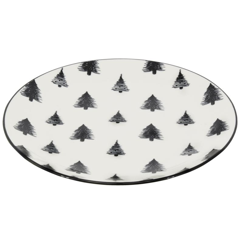ASSIETTE DESSERT EN PORCELAINE BLANCHE SAPIN NOIR D19CM LOT DE 6
