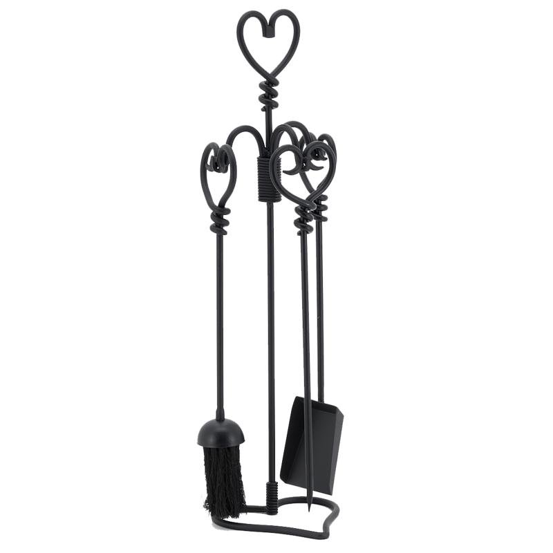 VALET DE CHEMINEE FER FORGE PIED ET POIGNEES COEURS 3 ELEMENTS H61CM