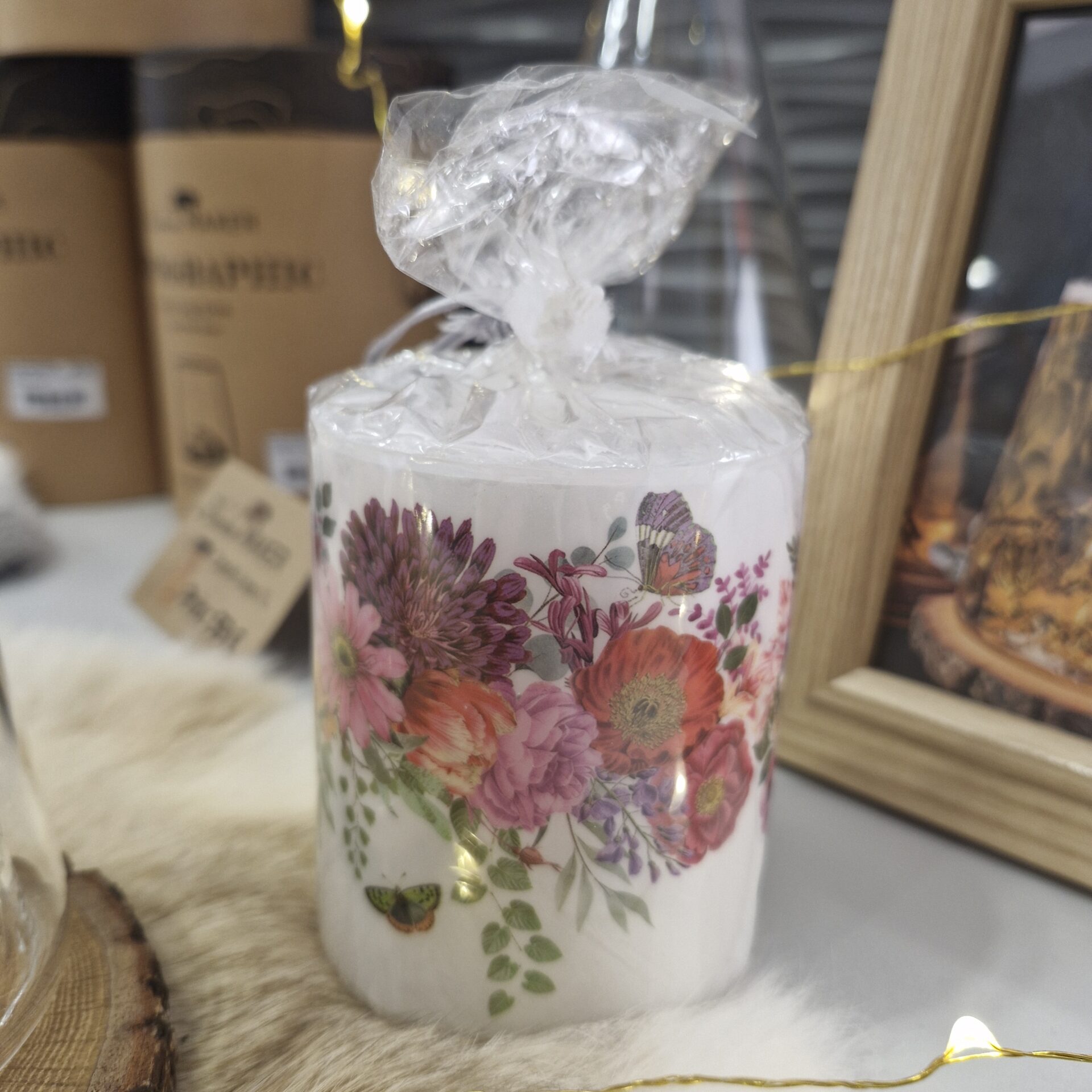 BOUGIE LAMPION PM GUIRLANDE DE FLEURS ROSES/ROUGES FOND BLANC
