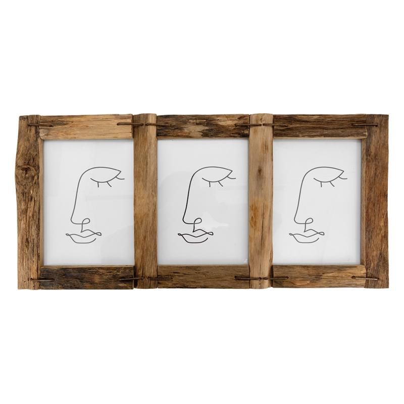 CADRE 3 PHOTOS EN BOIS STYLE RUSTIQUE AVEC CLOU PHOTO:13X18CM CADRE:50,5X25CM