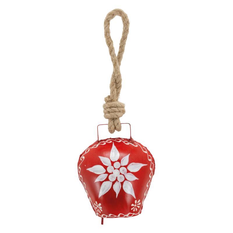 CLOCHE METAL ROUGE CORDON EDELWEISS BLANCHE H19CM