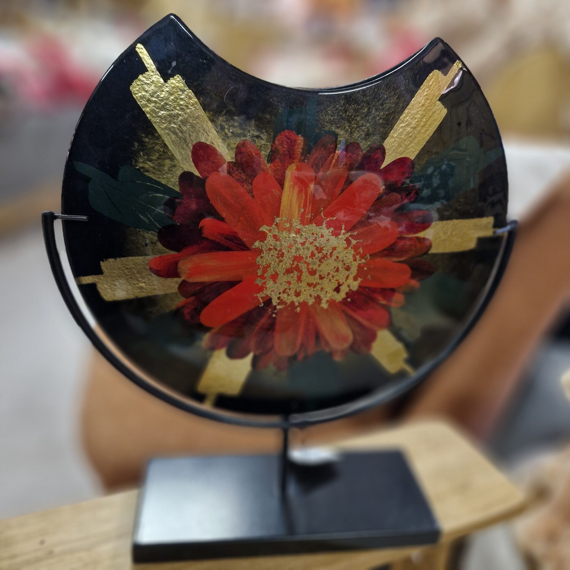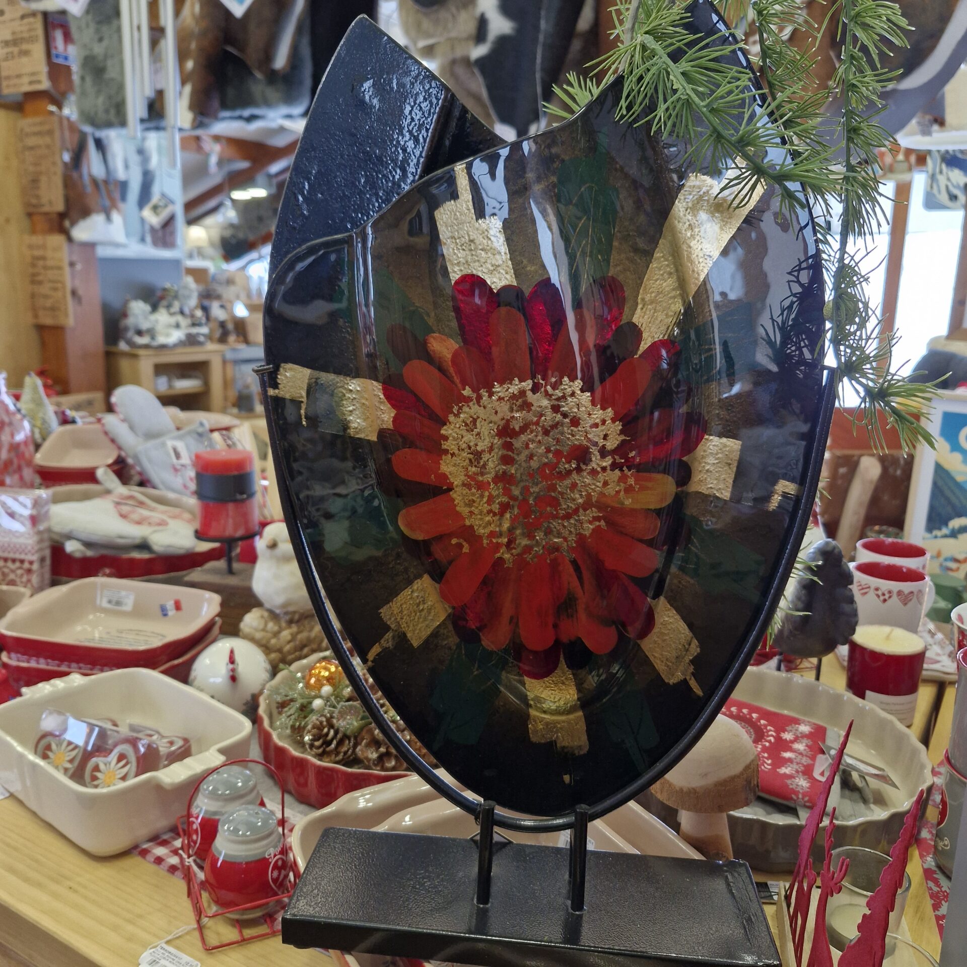 VASE ARC DAISY FLEUR ROUGE AVEC SOCLE NOIR 33X37CM