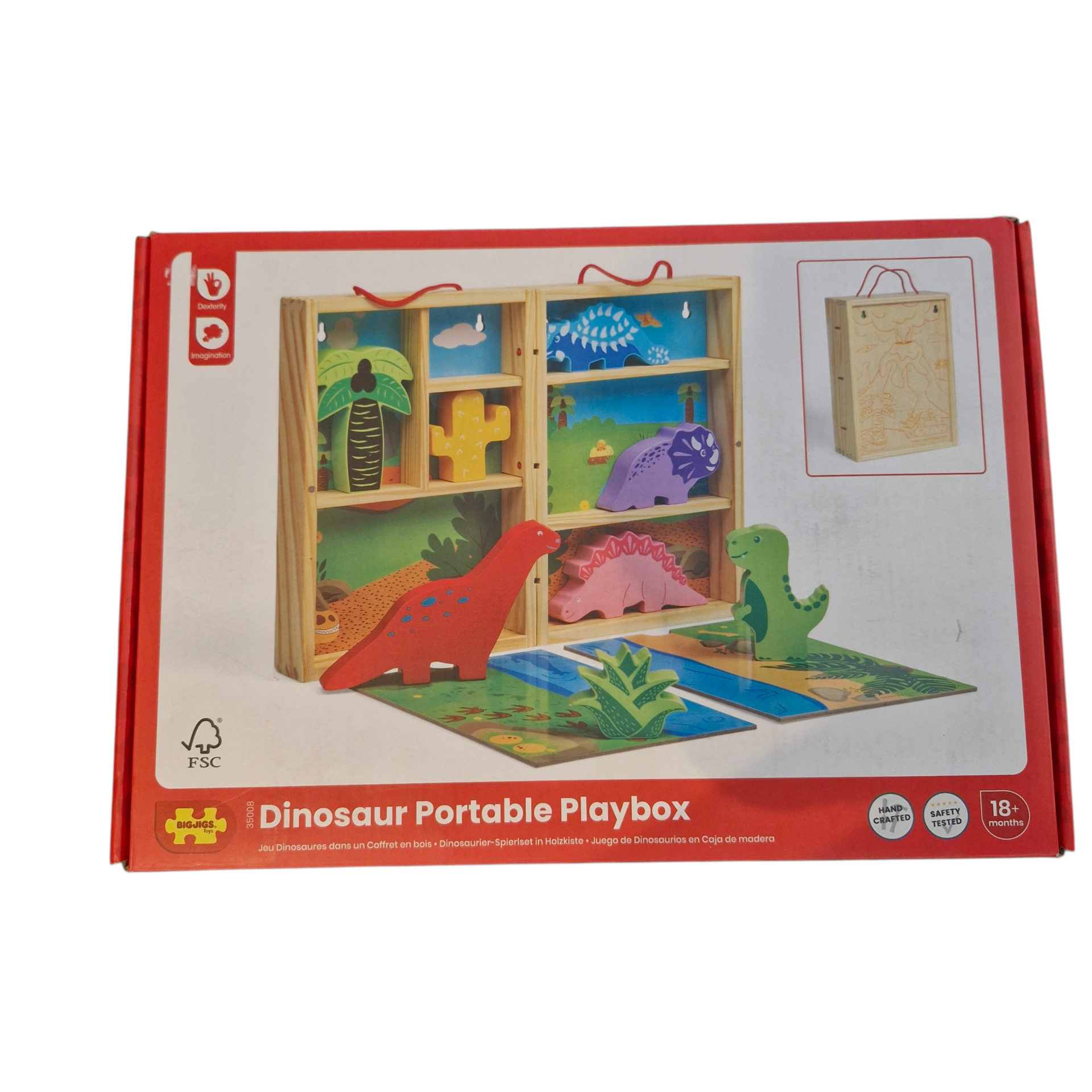COFFRET DINAUSORES PORTABLE BOITE EN BOIS AVEC ANIMAUX ET ARBRES EN BOIS 11PCS +18MOIS