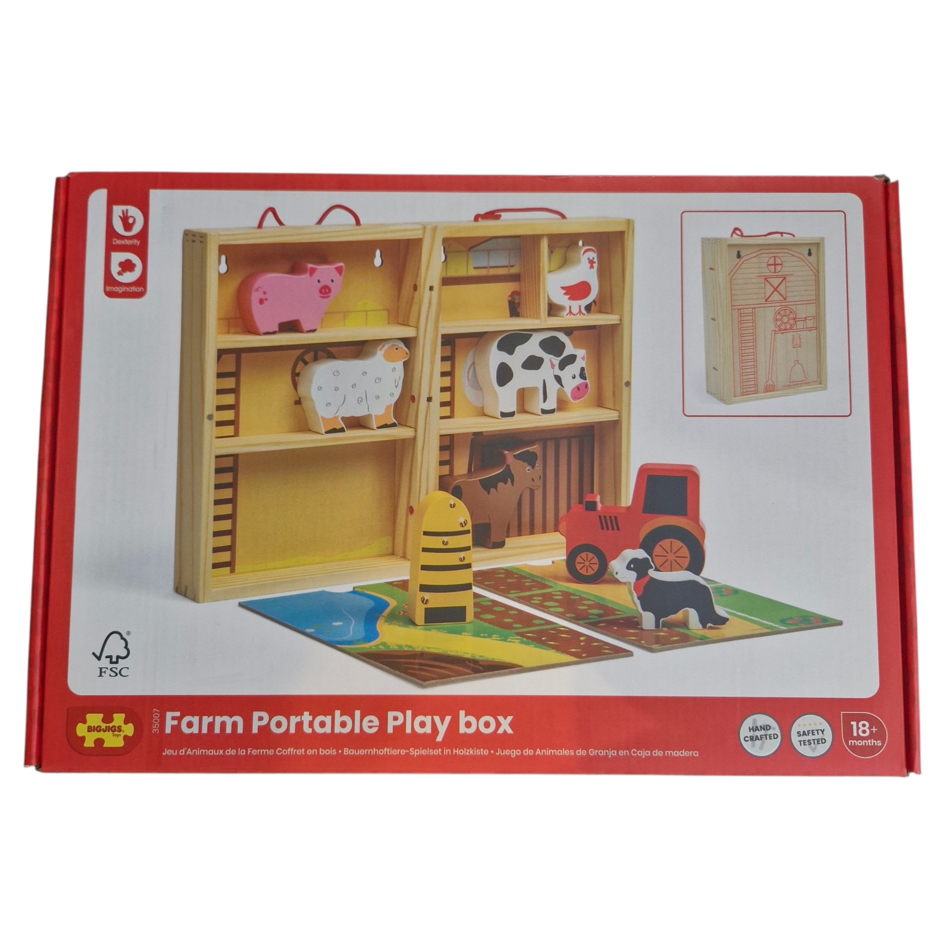 FERME PORTABLE BOITE EN BOIS AVEC TRACTEUR ET ANIMAUX 11PCS +18MOIS