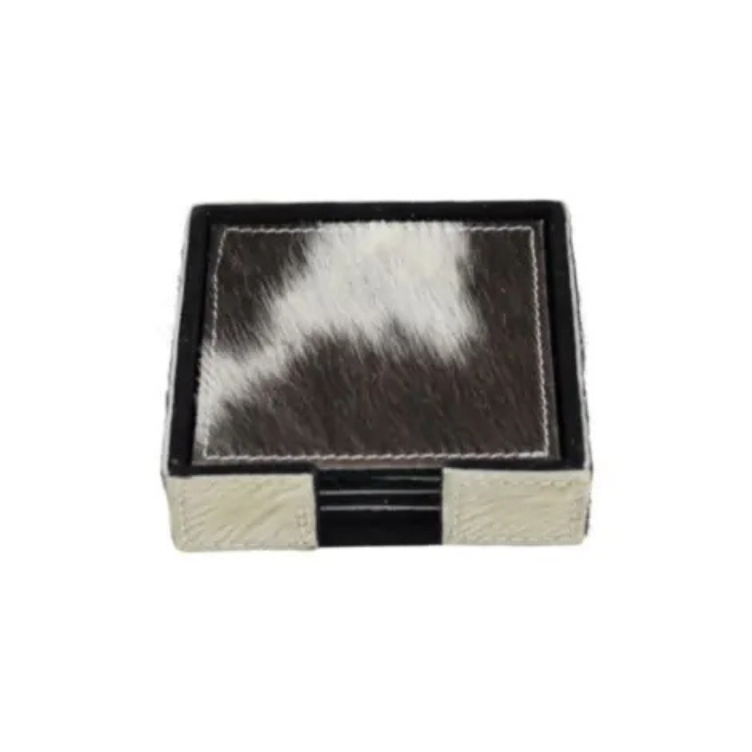 DESSOUS DE VERRE PEAU DE VACHE DANS SUPPORT CARRE NOIR BLANC LOT DE 4