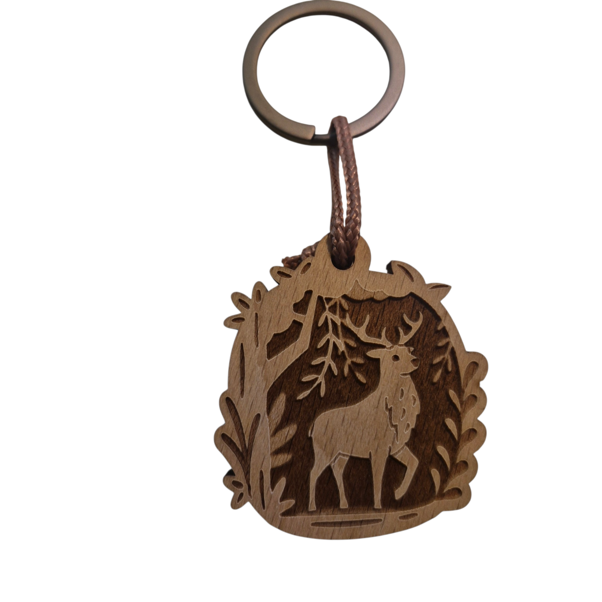 PORTE CLES ROND EN BOIS LEAFY MOTIF CERF