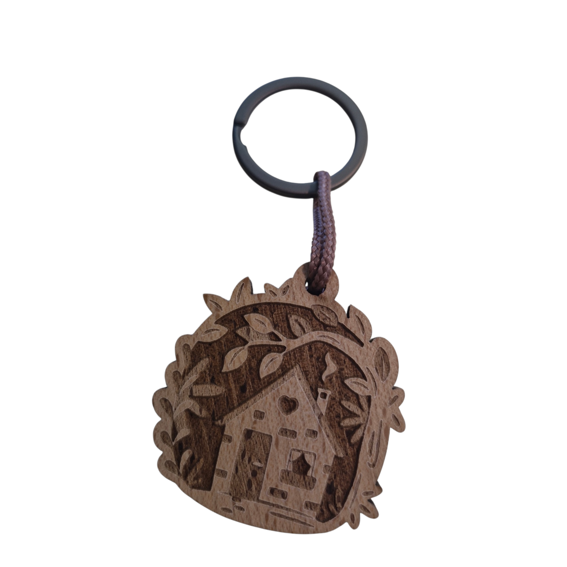PORTE CLES ROND EN BOIS LEAFY MOTIF CHALET