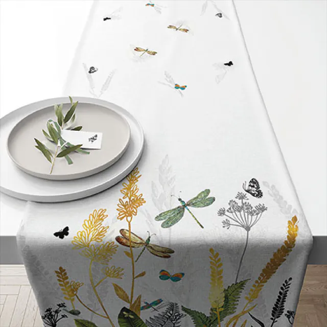 CHEMIN DE TABLE 40X150 LIBELULLES ET PAPILLONS FOUGERES MULTICOLORES