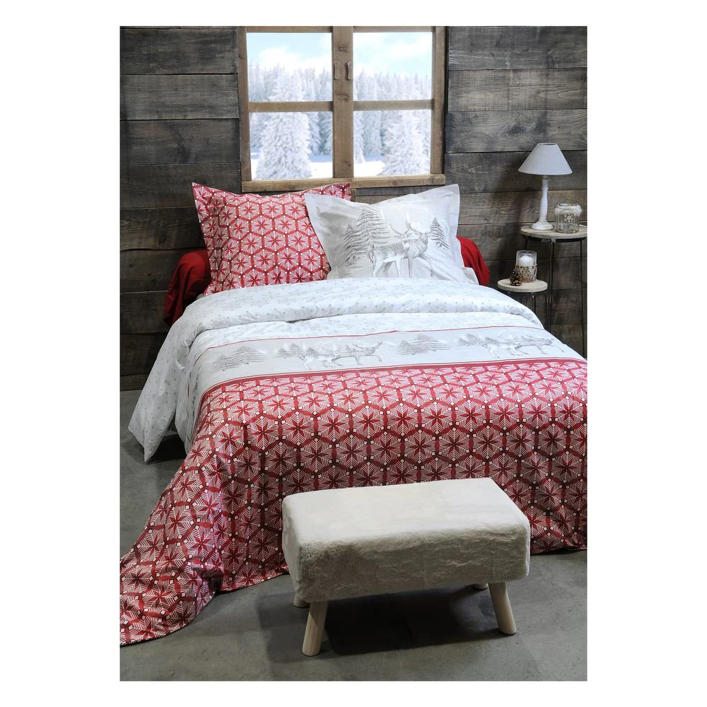 HOUSSE DE COUETTE LAUZIERE ROUGE 140X200+ 1 TAIE FORET FLOCONS