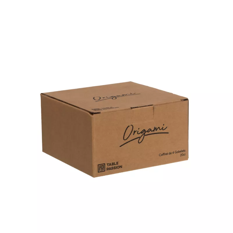 Each 20 cl cup features a unique design inspired by the art of origami, highlighting refined glaze effects and natural tones that are both warm and soothing.