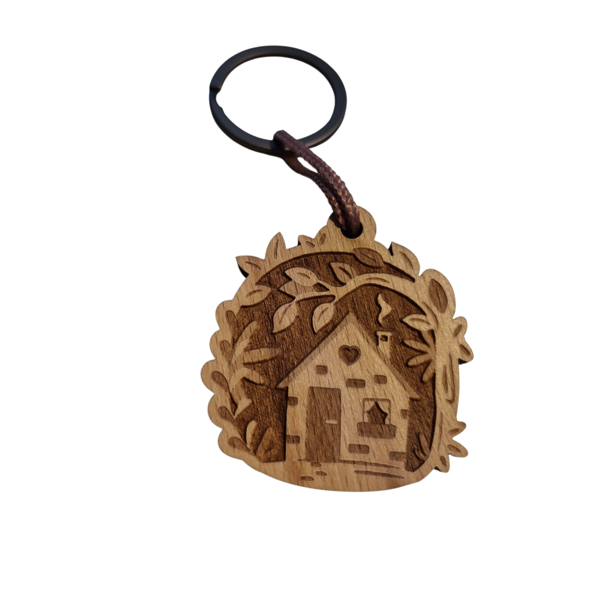 Bring the warmth and charm of mountain lodges with this beech wood keyring. The engraved chalet evokes the comfort and tranquillity of an alpine cabin, making it the perfect companion for those who love rustic atmospheres and contact with nature.