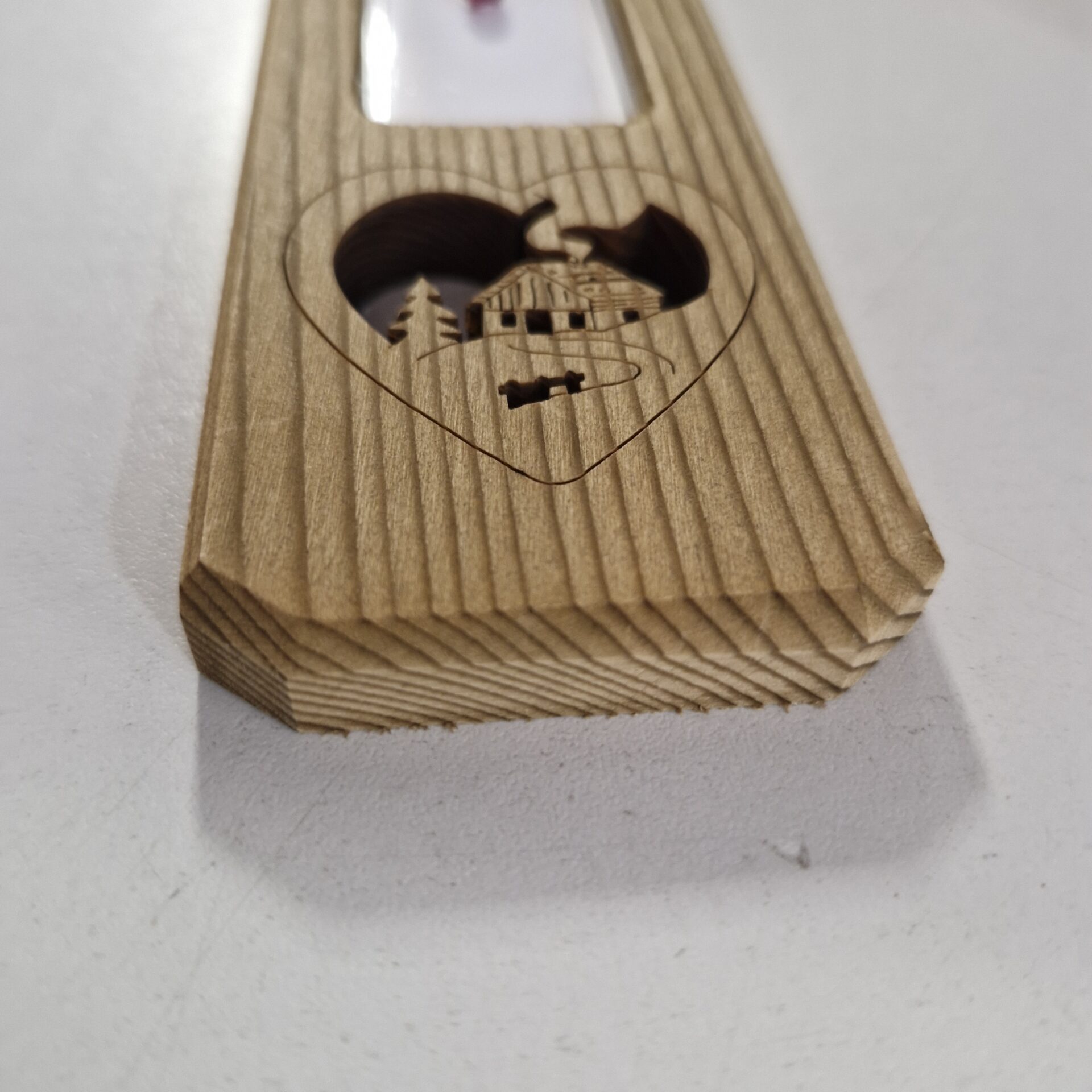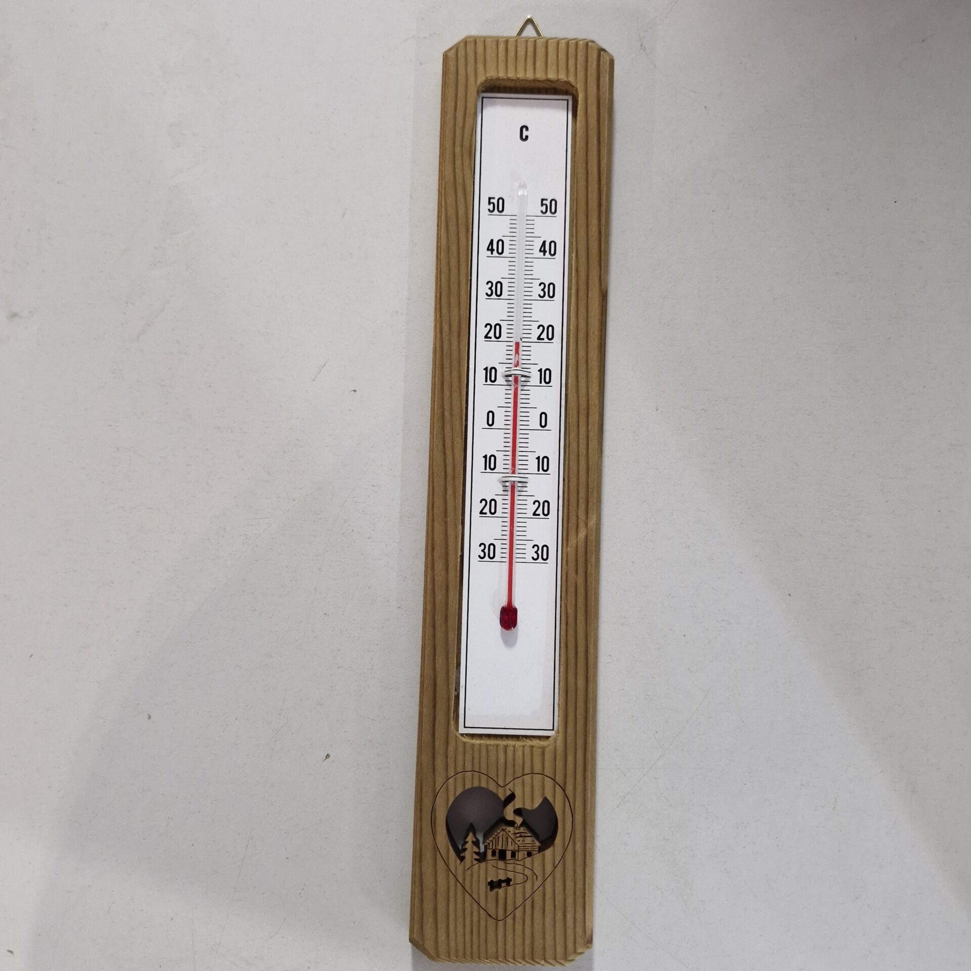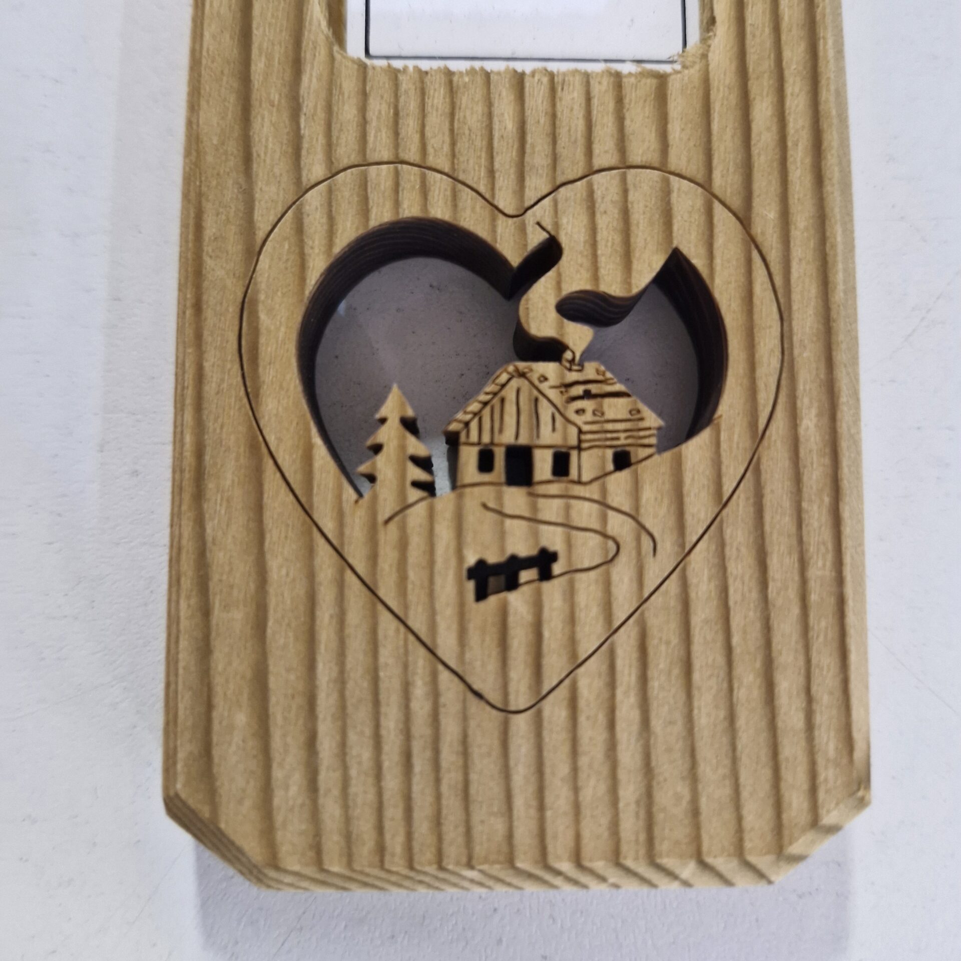 Add a warm, mountain-inspired touch to your décor with this wall-mounted fir wood thermometer, featuring a heart-shaped cut-out with a chalet motif. Perfect for recreating the cosy, authentic atmosphere of a mountain retreat in your own home.