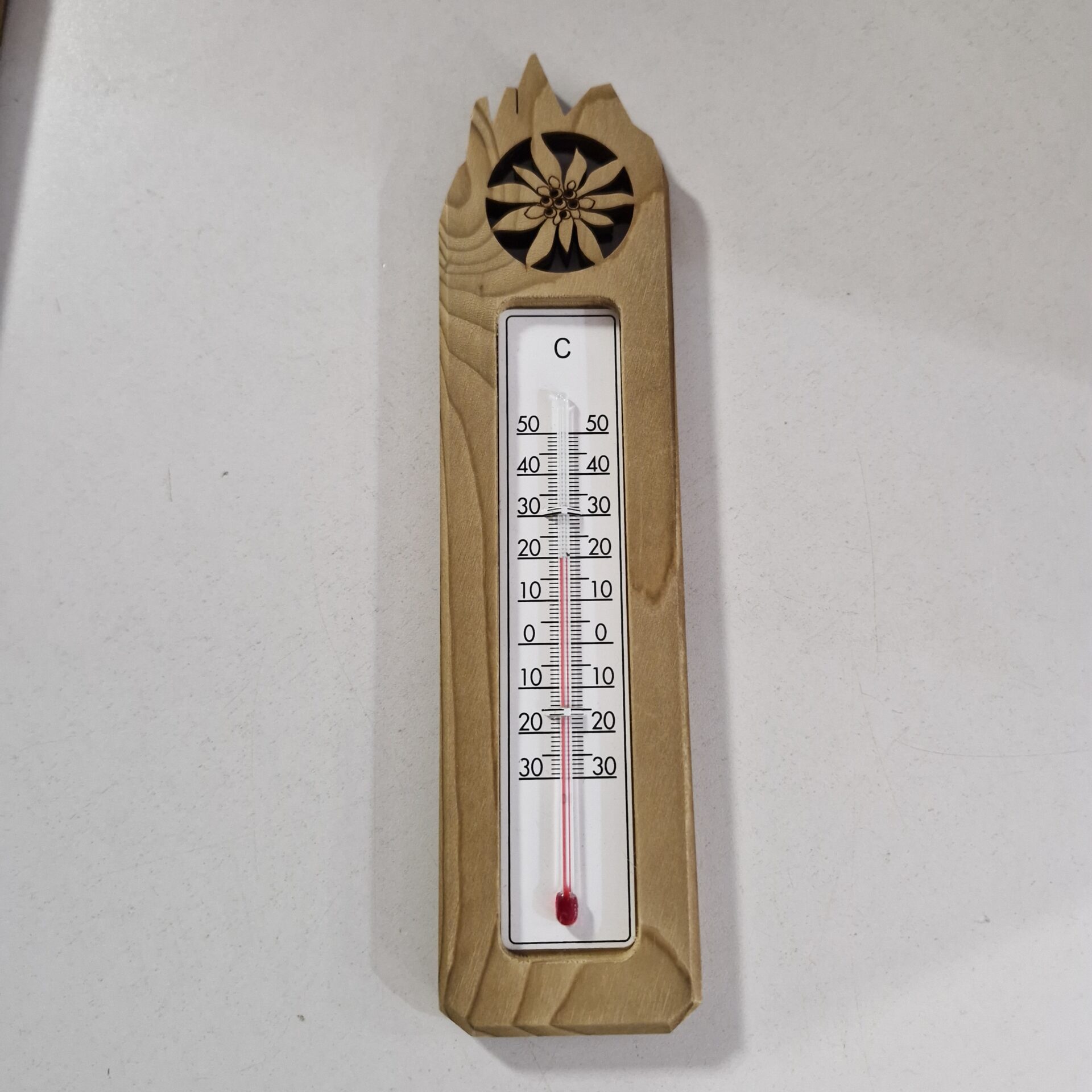 Thermomètre en sapin naturel Motif en découpe EDELWEISS Degrés Celsius de -30° à 50°