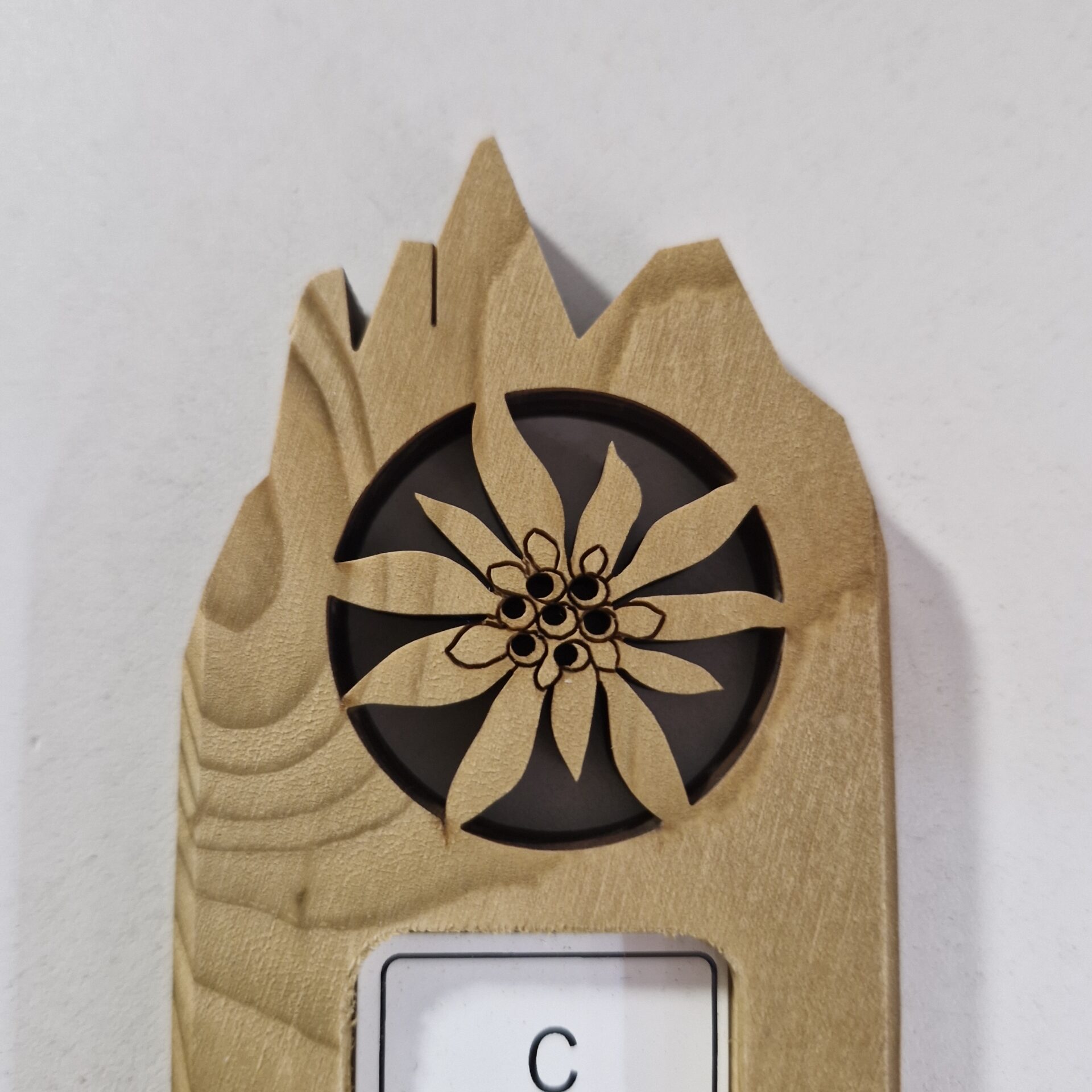 Add a warm, mountain-inspired touch to your décor with this wall-mounted fir wood thermometer, featuring an edelweiss cut-out. Perfect for recreating the cosy, authentic atmosphere of a holiday in the mountains in your own home.