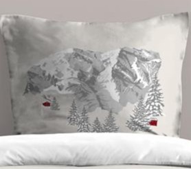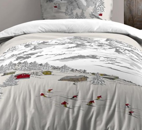 Cette housse de couette au motif montagne crée une ambiance douce et hivernale grâce à ses tons blancs et gris. Elle est animée de chalets et de skieurs colorés dans des nuances de rouge, marron et vert, apportant une touche chaleureuse et vivante à l’ensemble. Parfaite pour un esprit chalet cosy et authentique.