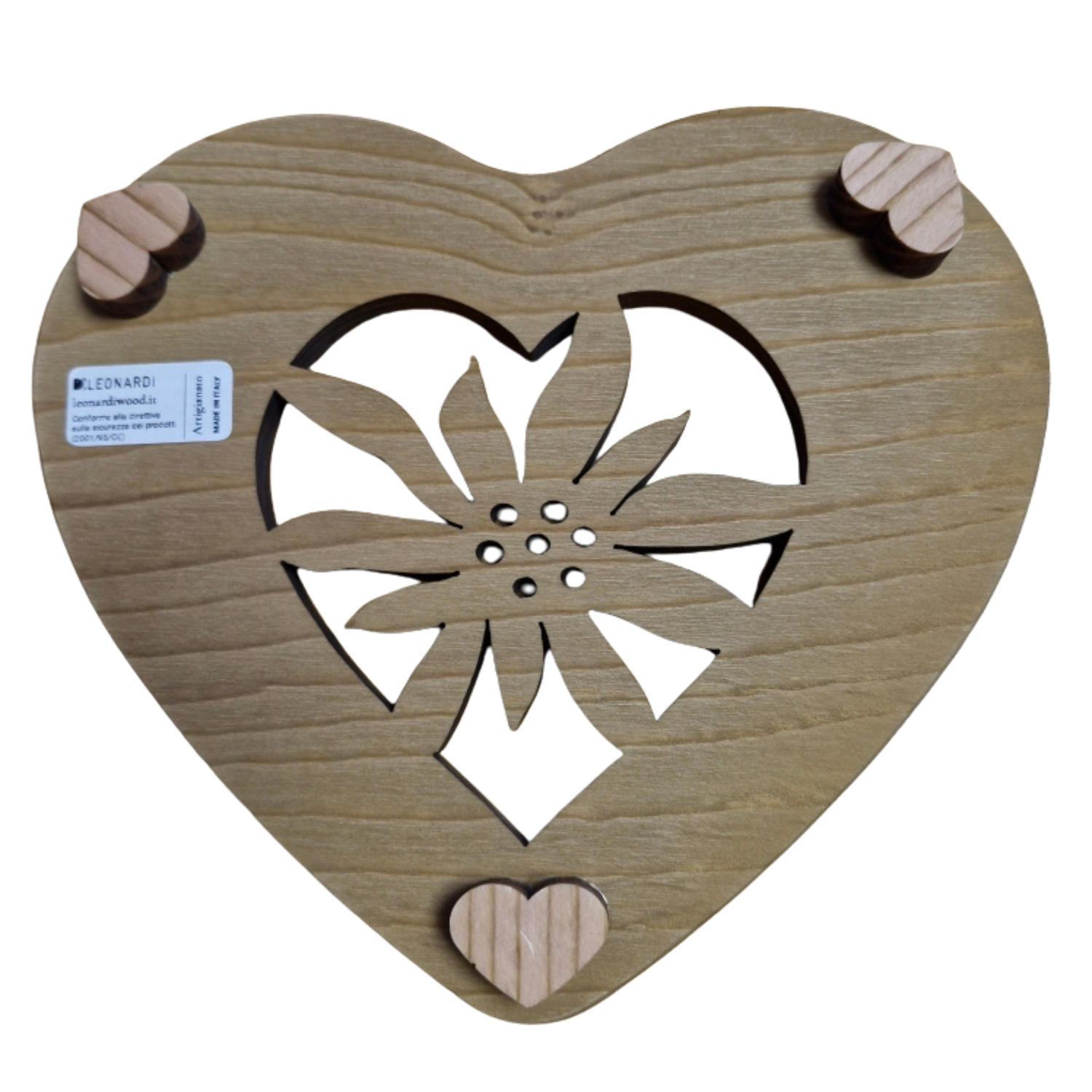 Dessous de plat en sapin Forme cœur Découpe Edelweiss