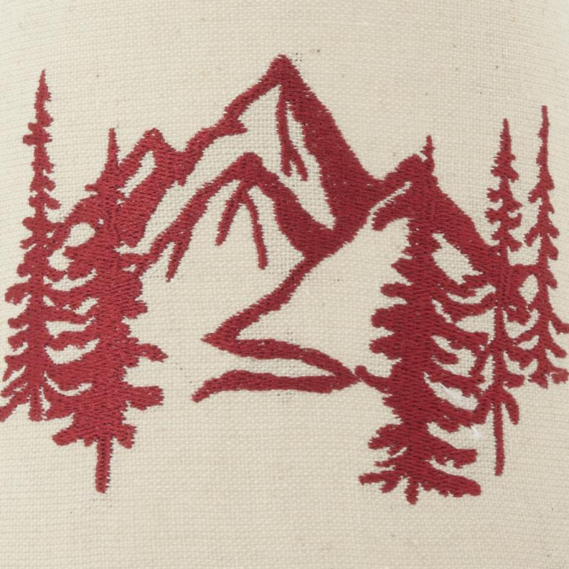 Conical cotton lampshade decorated with red embroidery depicting fir trees and mountains. A warm, rustic touch to create an authentic chalet atmosphere.