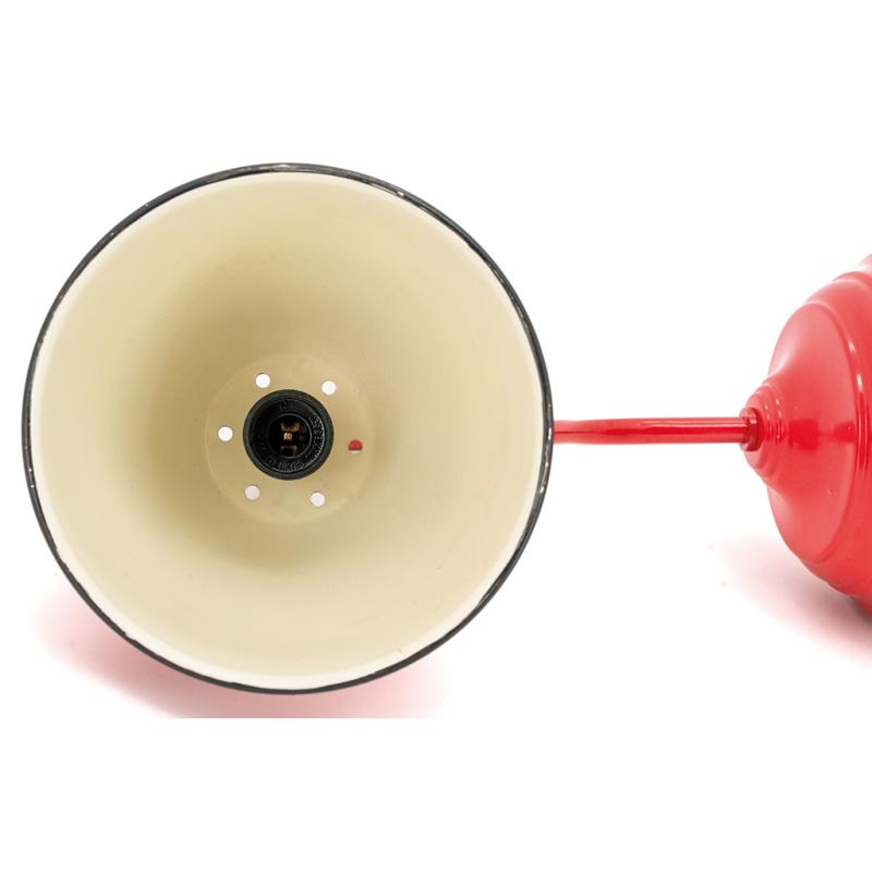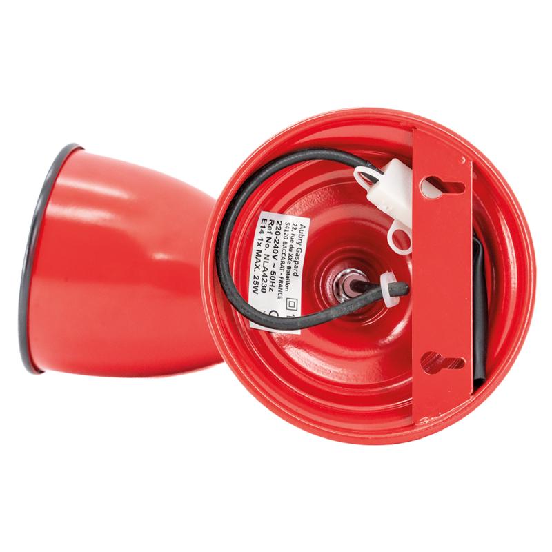 Red metal wall light with an industrial feel and a raw touch for a bold industrial décor.