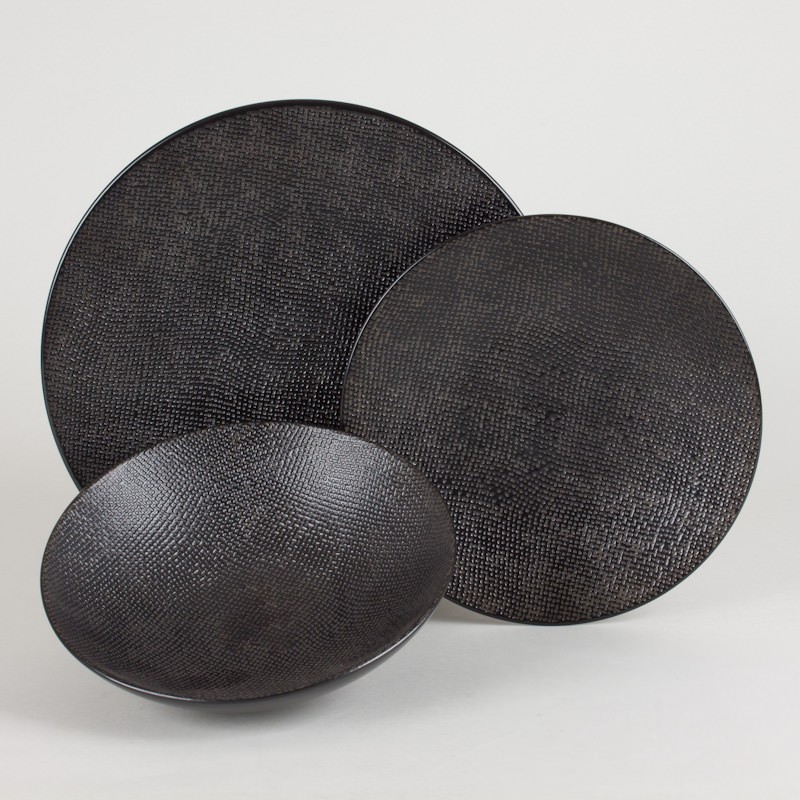 Lot de 6 assiettes creuses en grès Couleur noir, effet texturé Convient au lave vaisselle et au micro ondes Diam : 19cm