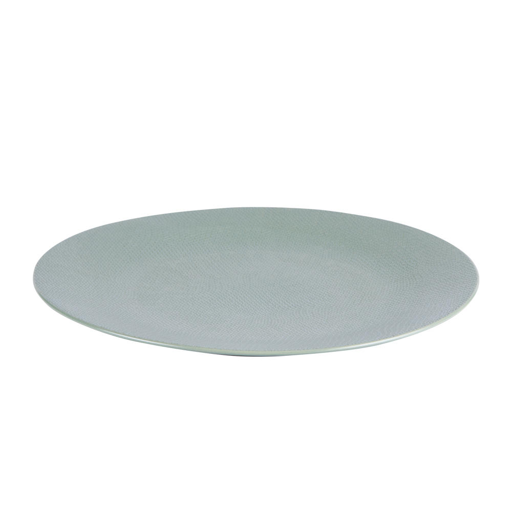 A ceramic dessert plate in a soft, natural sage shade, perfect for showcasing soups, pasta or dishes served with a sauce. Its textured, slightly glossy finish brings out the colours of the food. A generous size that combines refined aesthetics with practicality. A durable and elegant piece, suitable for both everyday use and special occasions.
