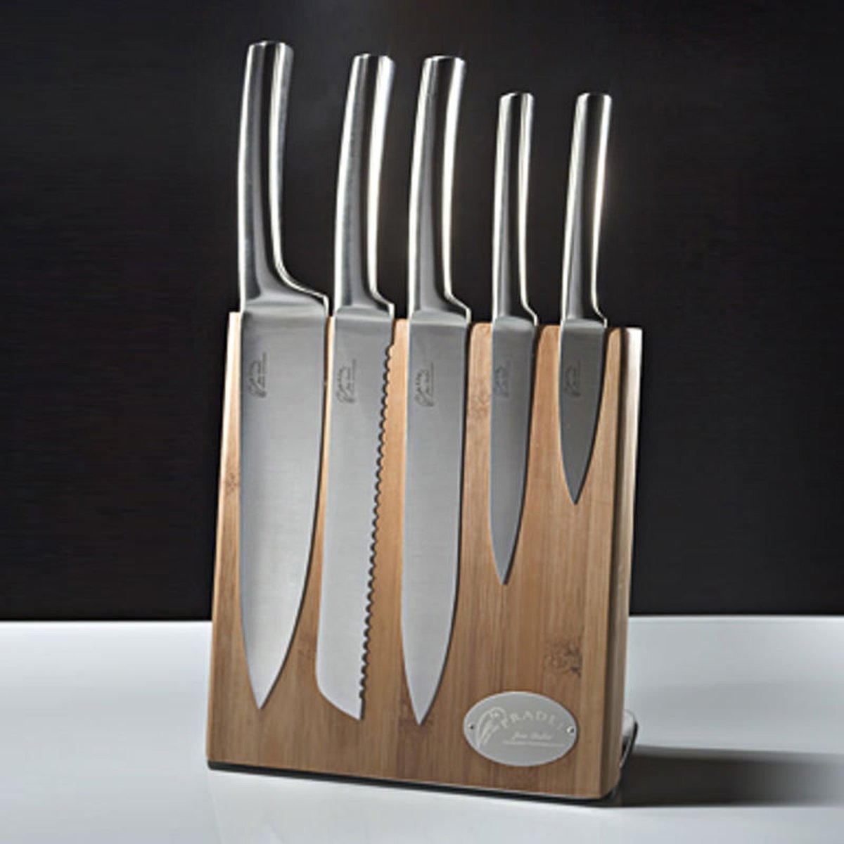 Bloc bambou de 5 couteaux de cuisine en Inox