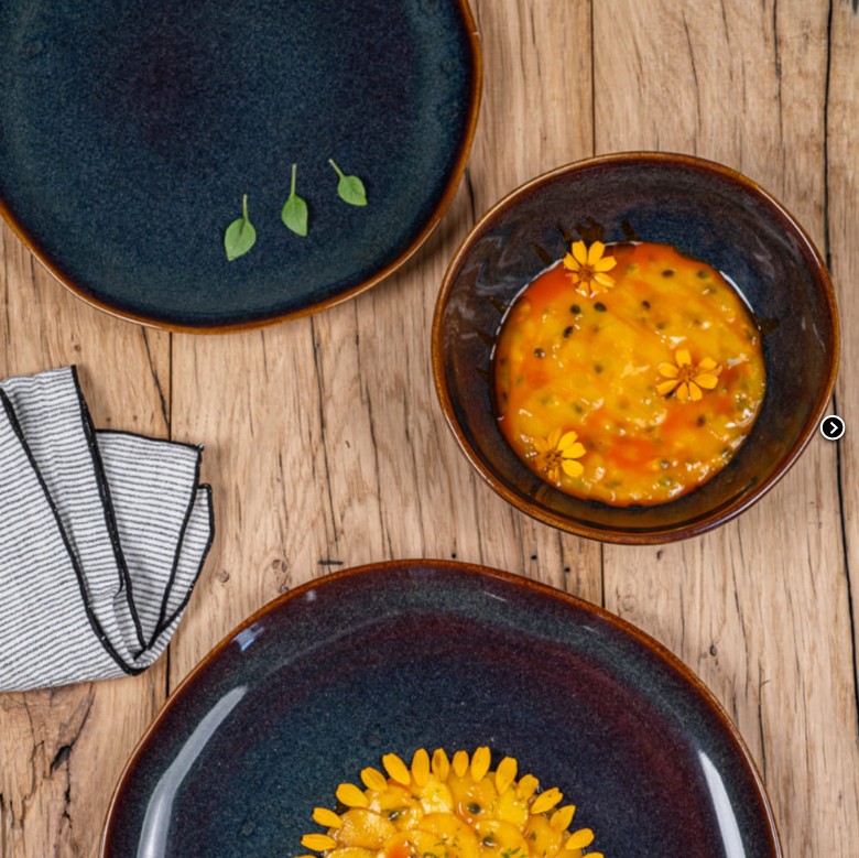 Harmonious colours and artisanal charm come together in this Symphonie bowl. Deep blue stoneware on the inside, enhanced by a delicate beige outline on the outside. Rounded and balanced shape, perfect for soups, cereals, desserts or small salads. Slightly glossy glazed finish for a soft touch and beautiful colour enhancement. Made from natural stoneware, resistant and durable for everyday use.