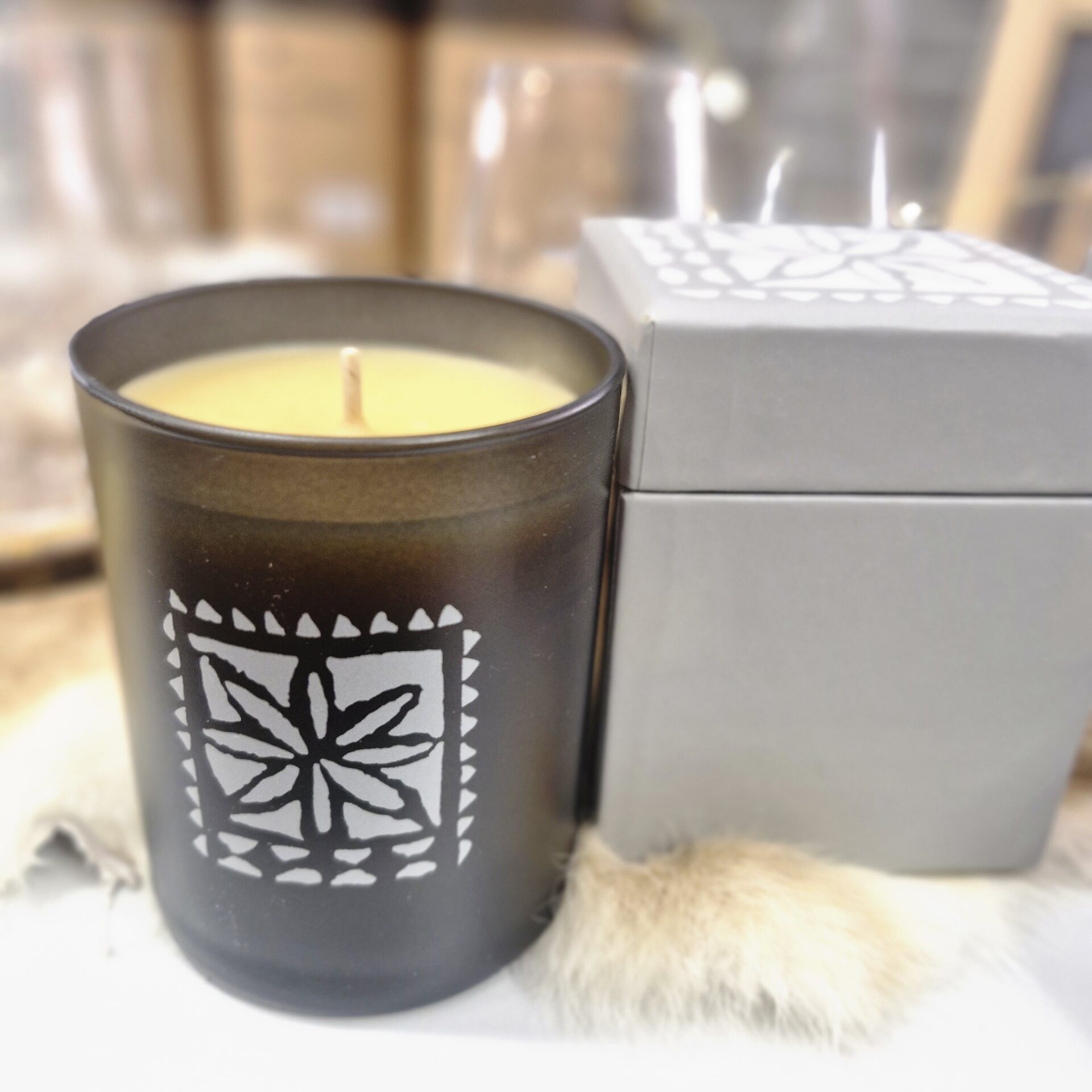 Bougie parfumée Mèche en pur coton. Verre laqué gris anthracite mat sérigraphié 80 heures de brûlage (bougie 200g) Boite cadeau Parfum de Grasse Fabrication artisanale française