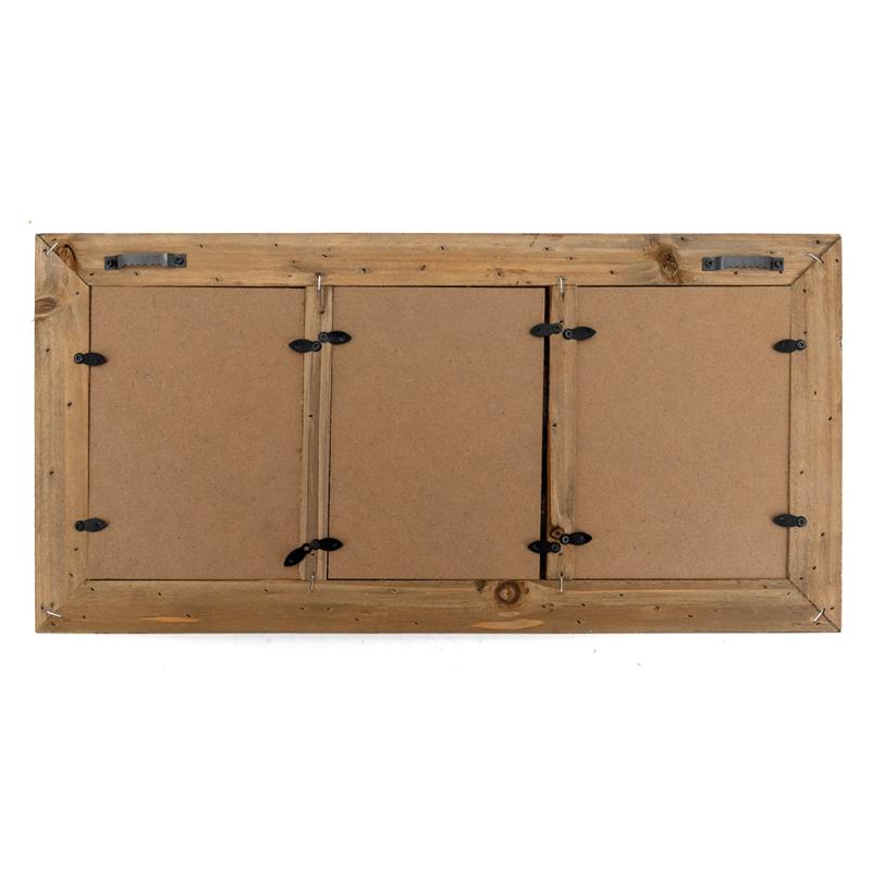 A 13×18 cm three-panel photo frame made from reclaimed wood with rust-effect staples. Perfect for a vintage, chalet or country house décor, ideal for displaying your memories in style.