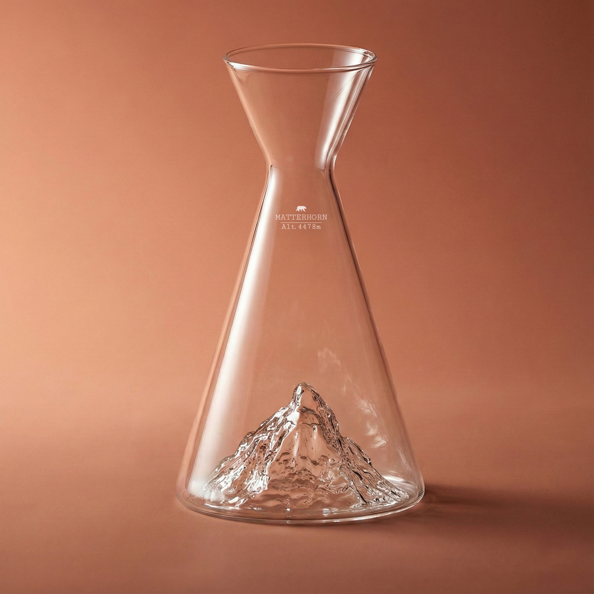 Immerse yourself in the world of the Alps with this hand-blown glass carafe, which reveals the contours of the legendary Matterhorn at the bottom of its bowl. An elegant and unique creation, inspired by the mountain’s actual topographical features.