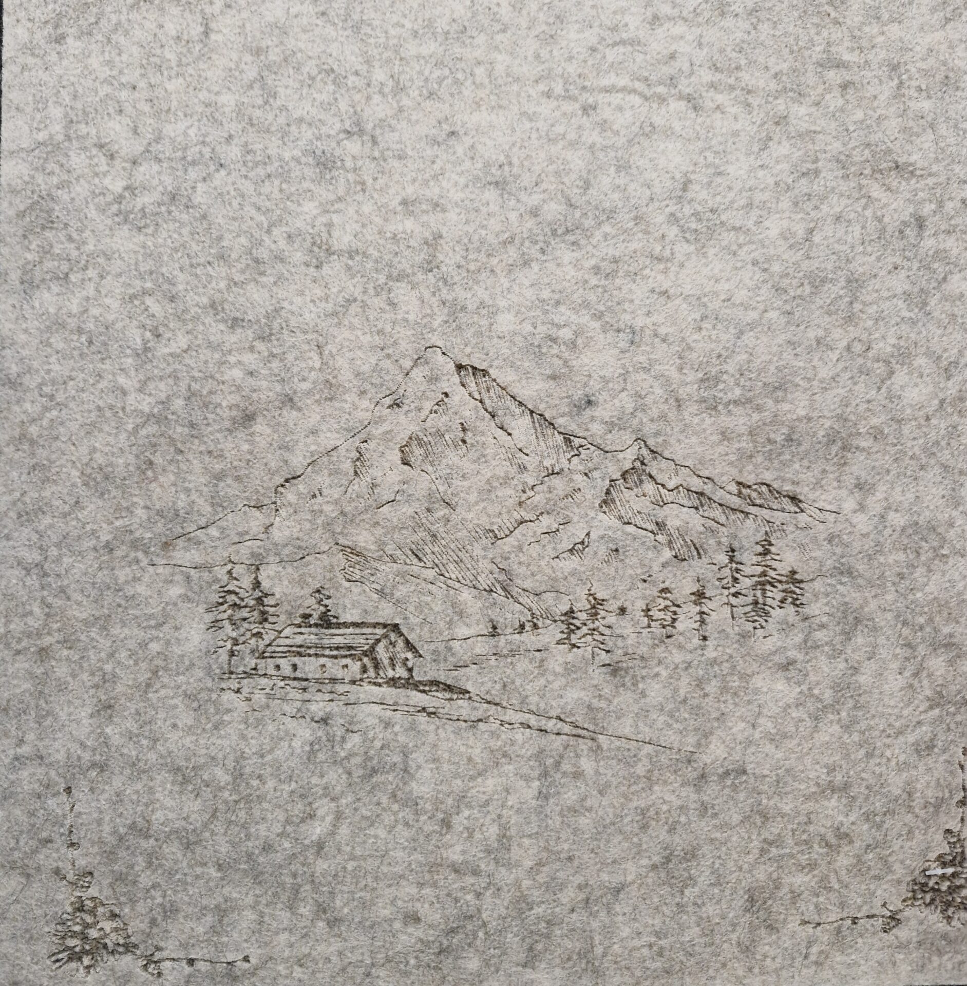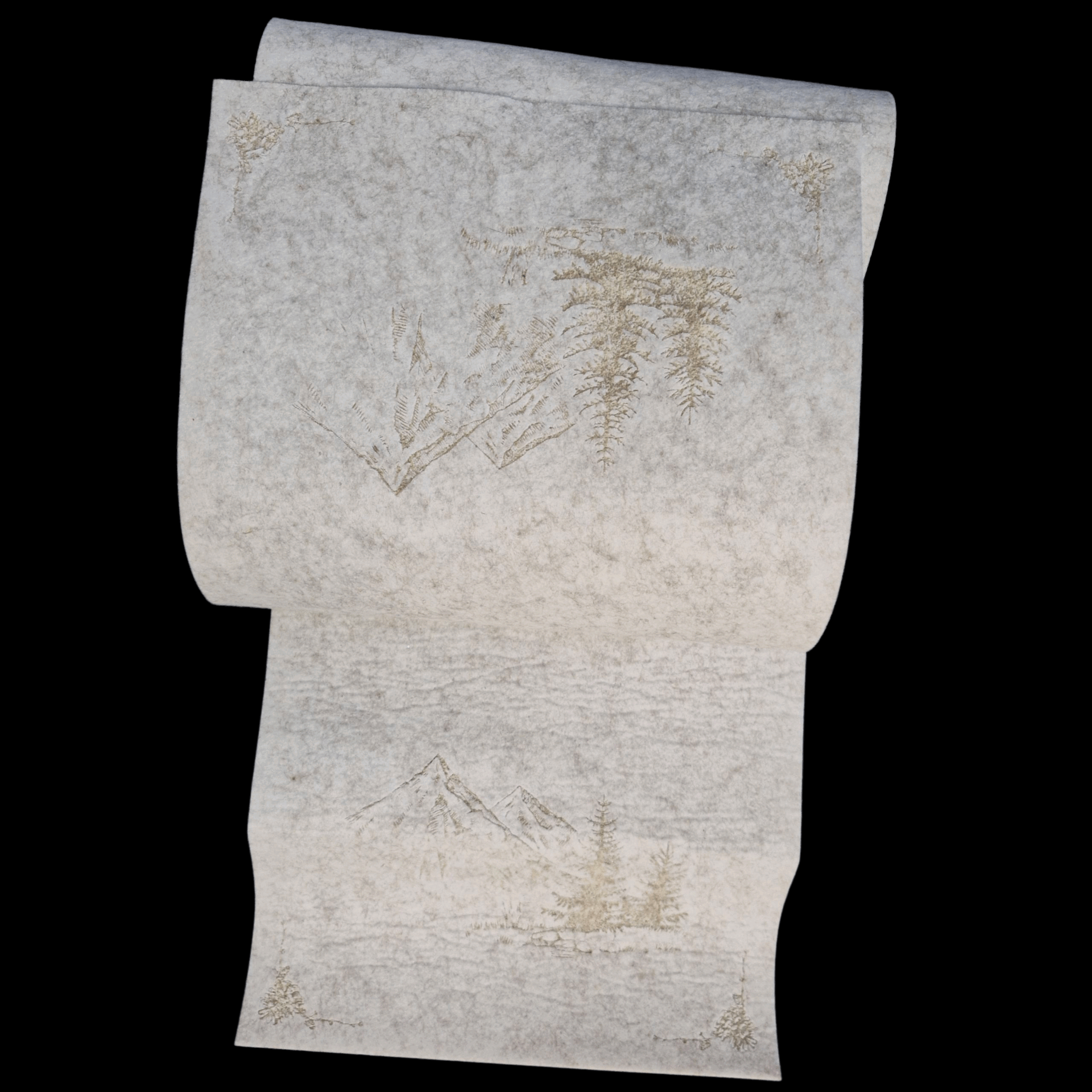 White felt table runner decorated with finely crafted alpine motifs: chalets, fir trees. Ideal for a warm, wintery or mountain-inspired décor. Soft, lightweight felt with clean, precise cuts, combining rustic and refined styles. Perfect for enhancing a festive table, sideboard or seasonal décor.