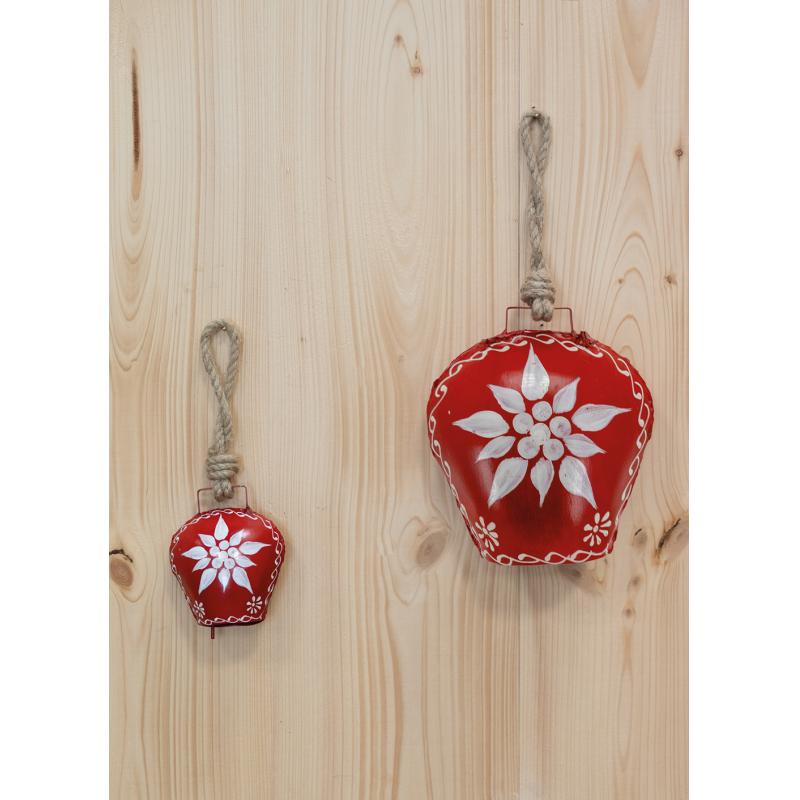 This red metal hanging bell, decorated with a white edelweiss flower and suspended by a cord, adds a festive, mountain-inspired touch to your décor. Inspired by Alpine traditions, it evokes chalets, snow-covered landscapes and the poetry of mountain peaks.