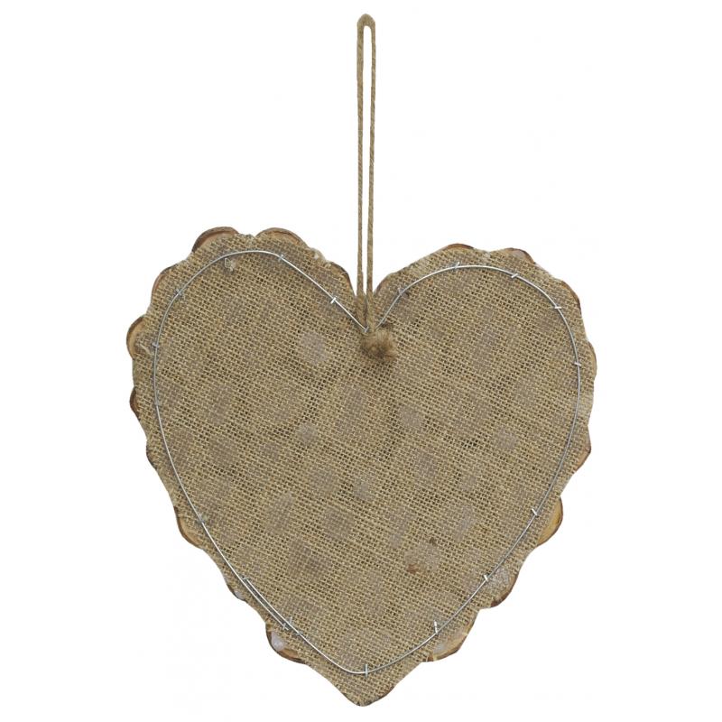 Forme de cœur en rondins de pin sur toile de jute