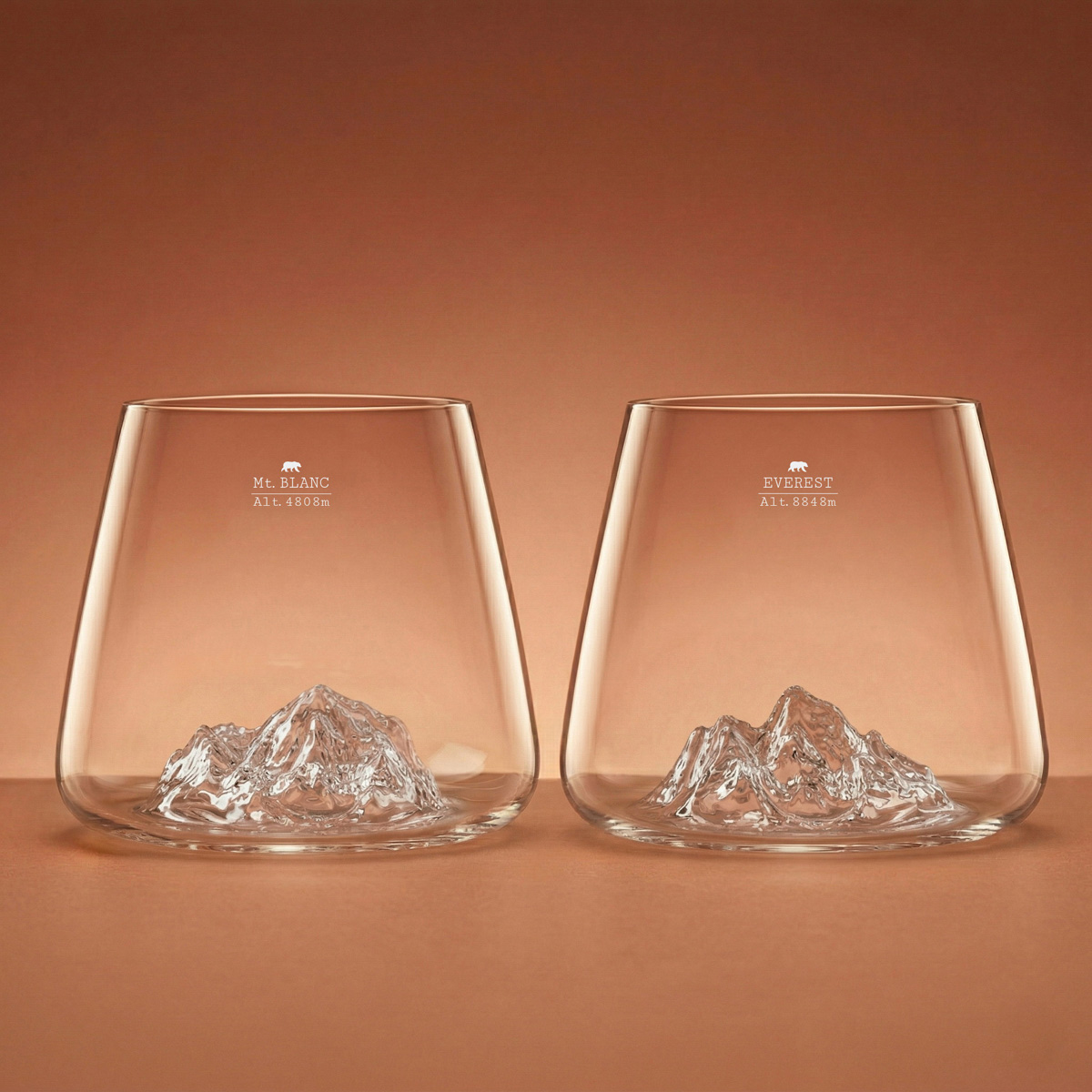 Two legendary peaks, one exceptional set. This elegant set brings together two one-of-a-kind glasses, each featuring a 3D topographical relief of Mont Blanc, the roof of Europe and emblem of the Alps, and Mount Everest, the world’s highest peak and the ultimate symbol of adventure! The perfect pairing for whisky lovers or mountain enthusiasts.