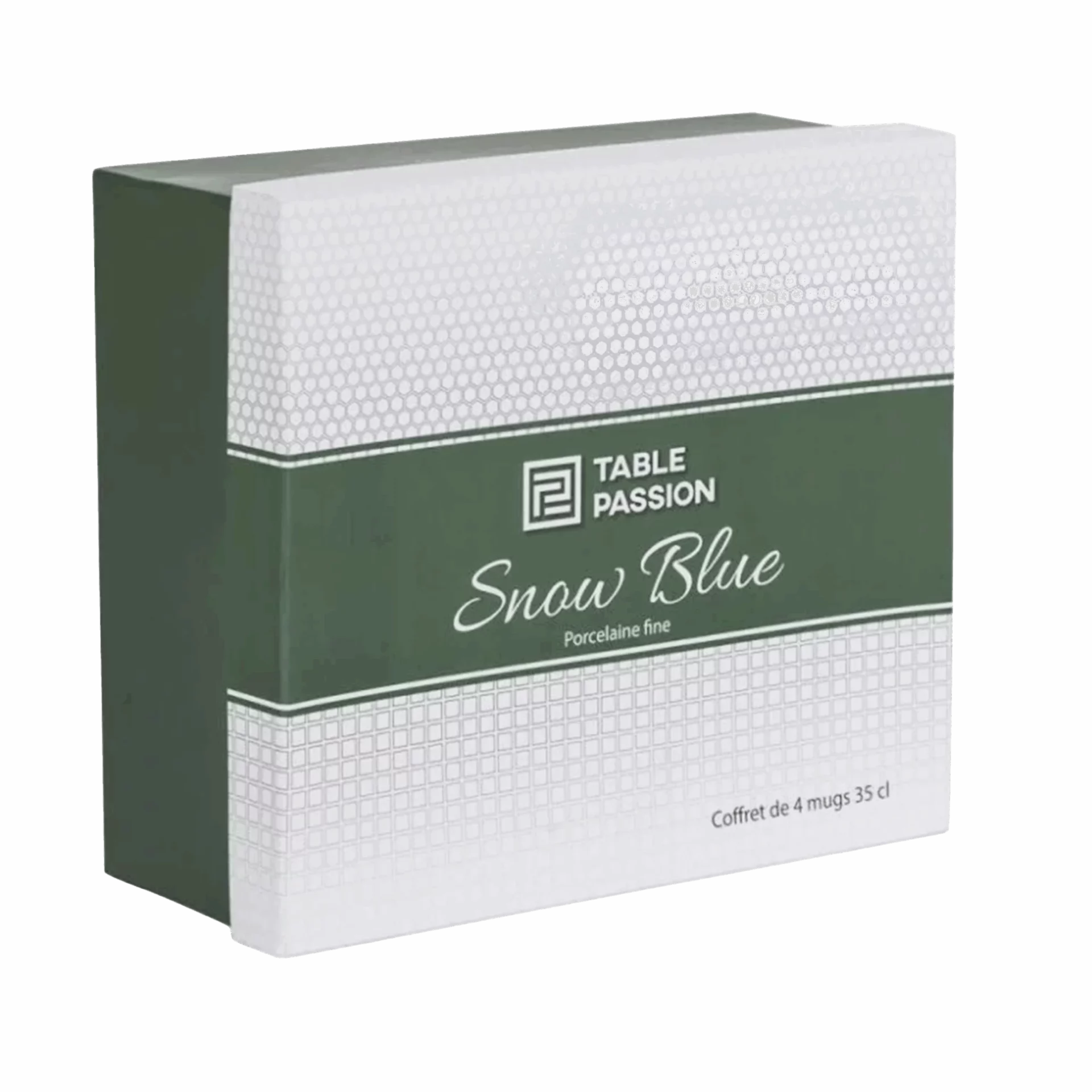 A set that celebrates the beauty of snowy landscapes through four mugs in shades of frosty blue and a refined design. An atmosphere of calm and warmth emanates from each piece, perfect for moments of relaxation. An elegant gift box, ready to give, that will delight lovers of beautiful tables and cocooning atmospheres.