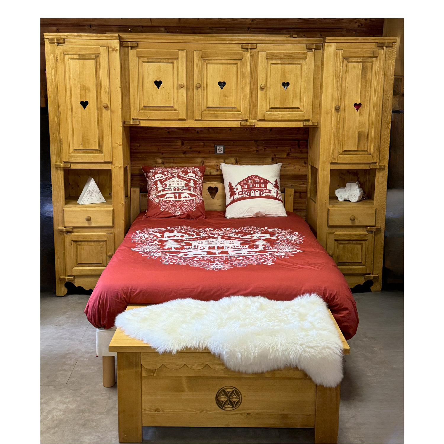 La collection MONT DE GRANGE est en épicéa massif avec une finition huilée. Un mobilier authentique de style montagnard