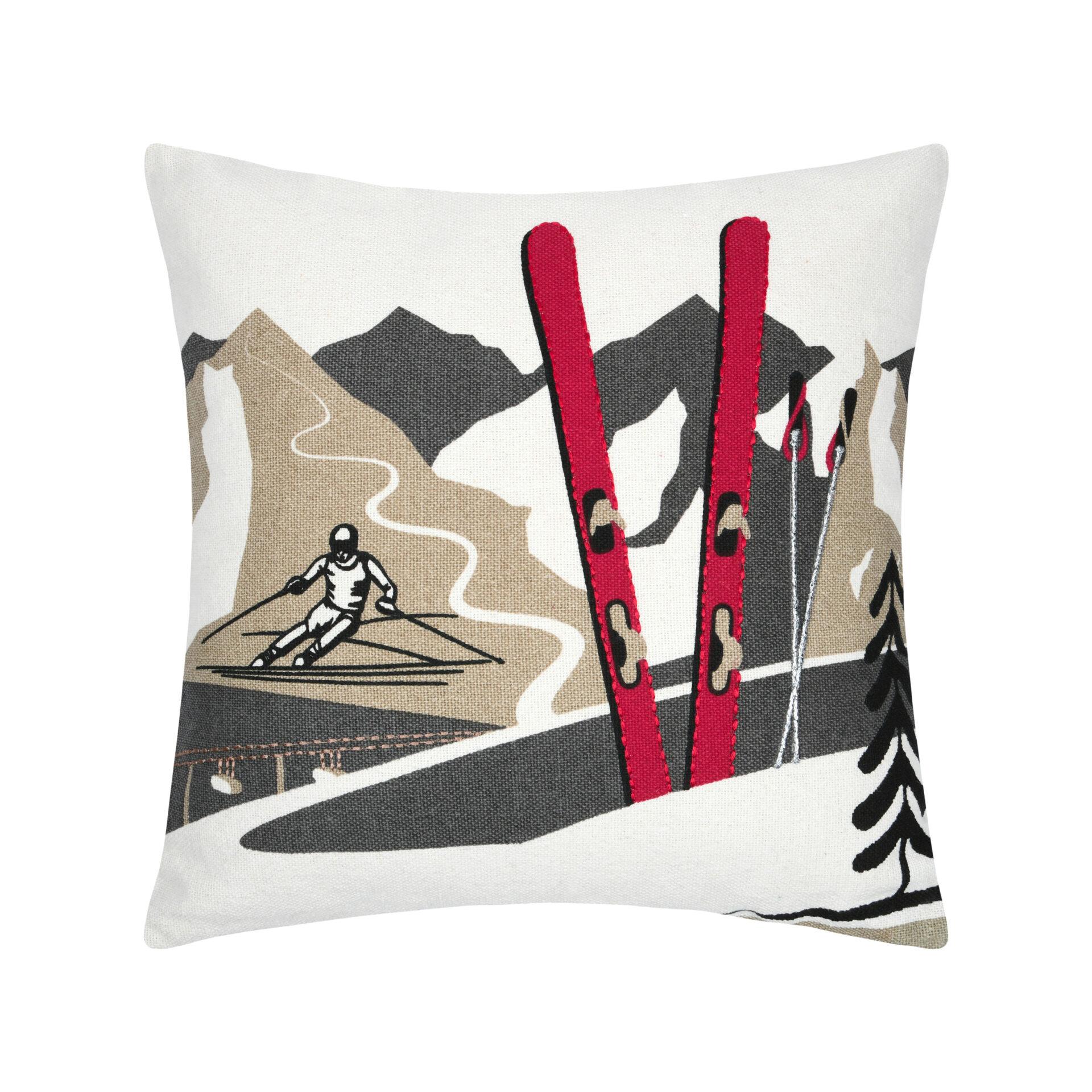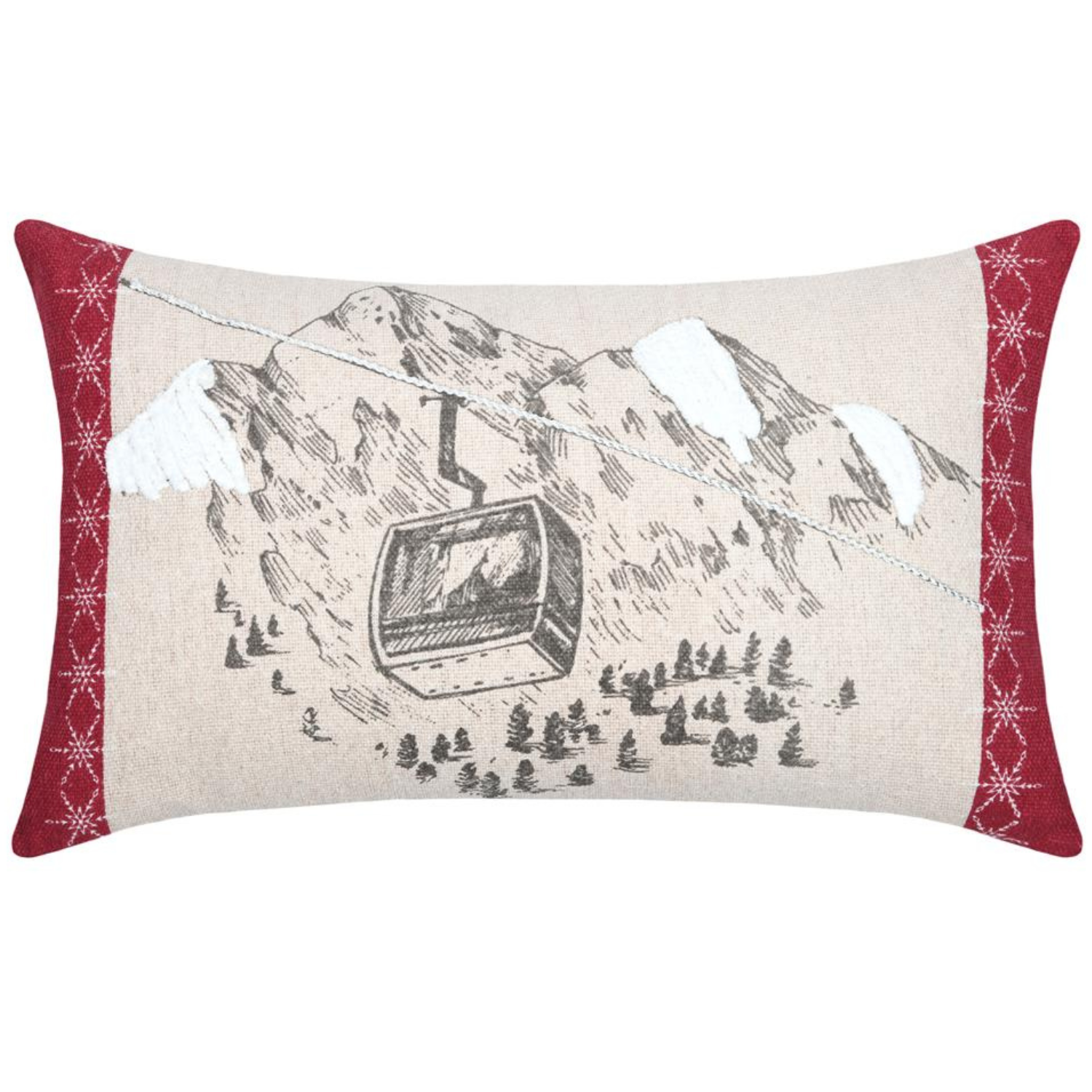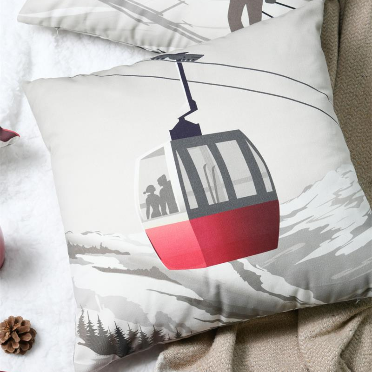 Add a cosy touch to your home with this cushion featuring a red cable car and a couple suspended above the mountains. With its soft grey tones and simple, charming design, it’s perfect for the living room or bedroom.