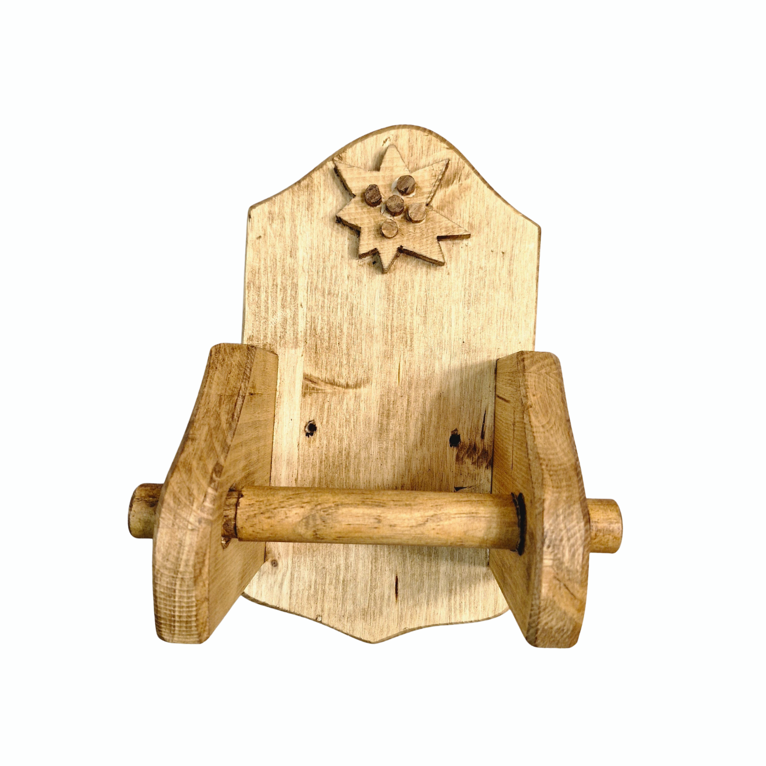Toilet roll holder decorated with an edelweiss. Practical, elegant design, suitable for holding a roll of toilet paper. A functional and decorative accessory that adds a charming and original touch to any bathroom.