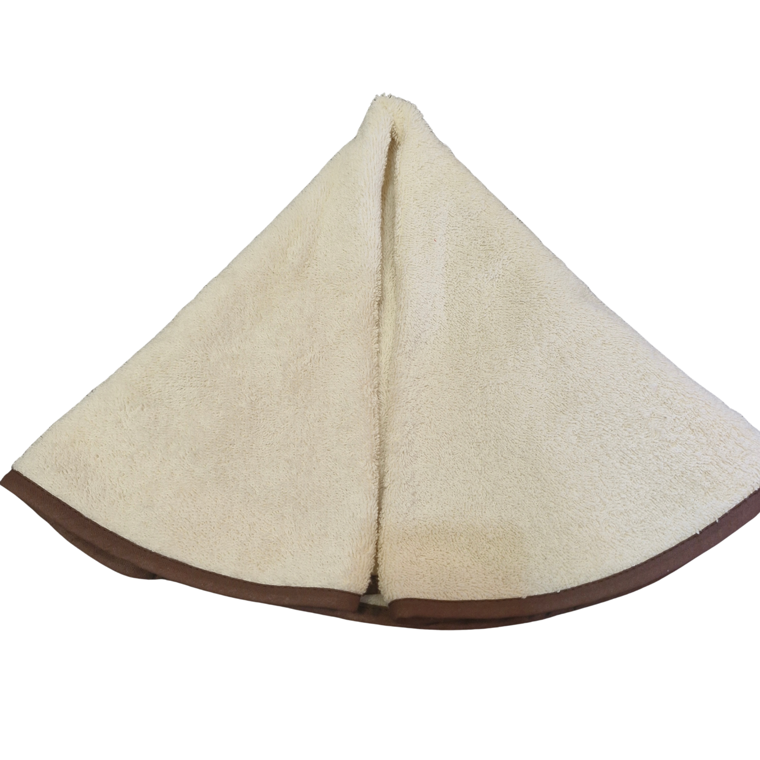 This round cotton terry towel is a real eye-catcher with its natural ecru colour, enhanced by an elegant brown border that emphasises its warm, welcoming feel. Soft and absorbent, it is ideal for everyday use in the kitchen or bathroom. It is delicately embroidered with iconic mountain motifs depicting a marmot, a ibex and a chamois, adding an authentic, wild touch to your home. Practical thanks to its hanging loop, it hangs easily and combines functionality with charming décor.