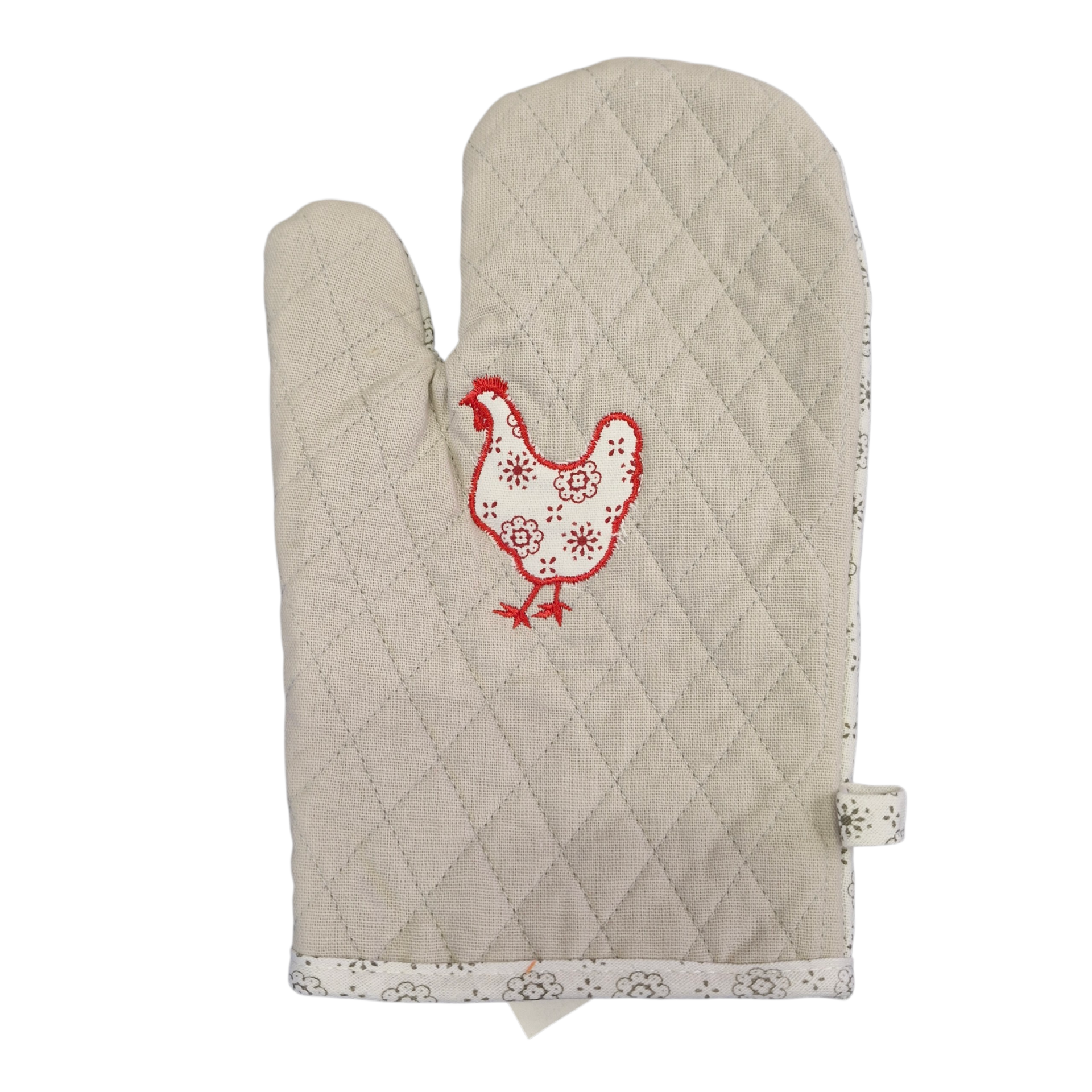 Add a touch of country charm to your kitchen with this cotton and linen oven glove, decorated with a delicate red hen motif. The cheerful and colourful red hen motif invites conviviality and a return to nature, while adding a decorative touch that will brighten up your cooking moments.