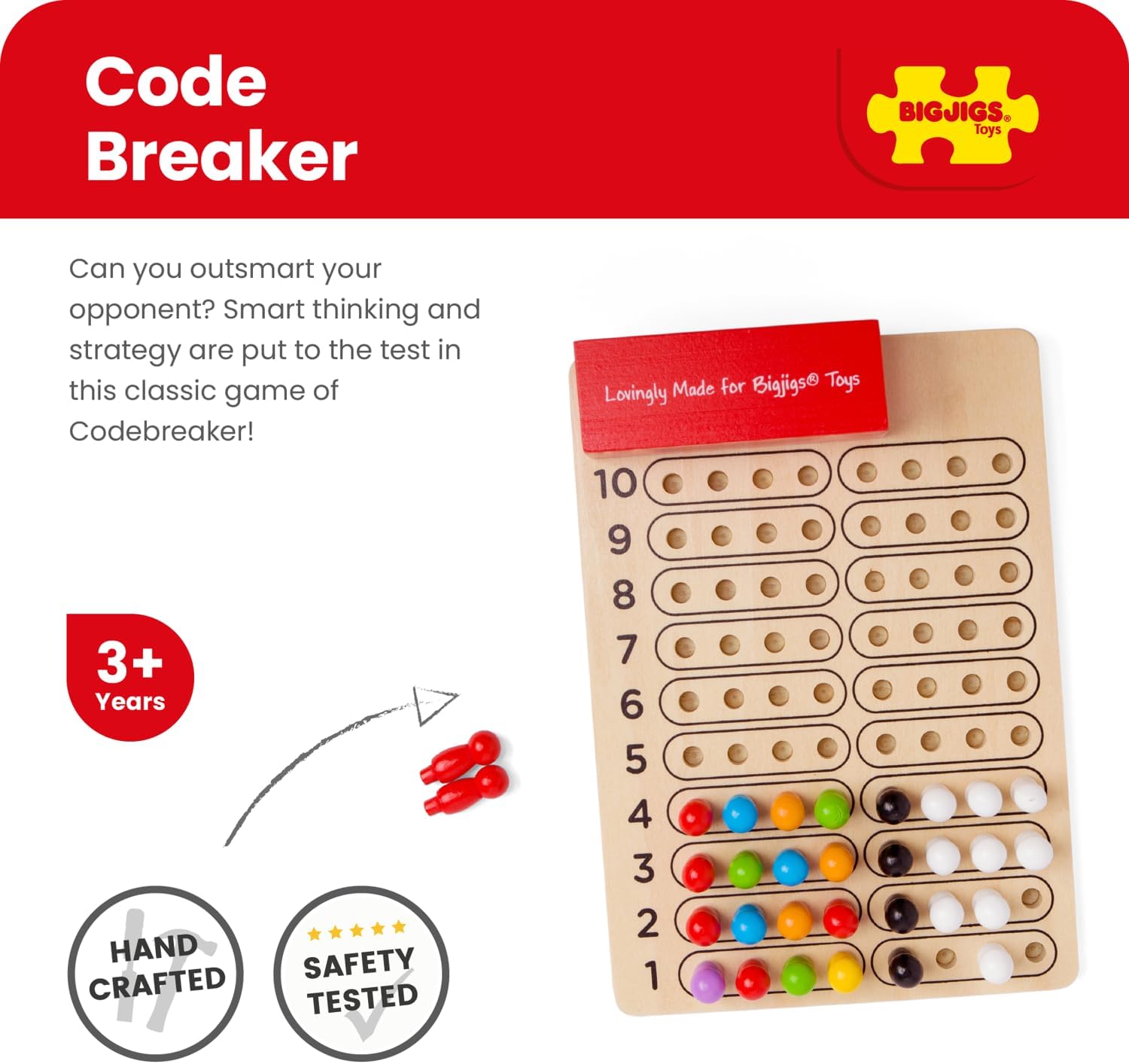 Saurez-vous surpasser votre adversaire ? Réflexion et stratégie sont mises à l’épreuve dans ce jeu classique de Décryptage ! Notre casse-tête de décryptage est composé de pions colorés et monochromes qui s’insèrent parfaitement dans le plateau en bois.