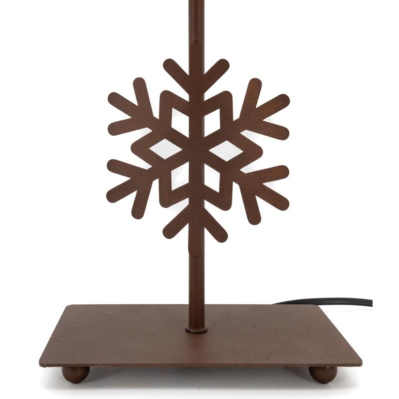 Immerse your interior in a warm, wintery atmosphere with this decorative metal lamp, featuring a finely crafted snowflake-shaped base and a beige lampshade adorned with brown mountains. Elegant and original, it evokes the spirit of Alpine chalets, combining mountain freshness with indoor comfort.