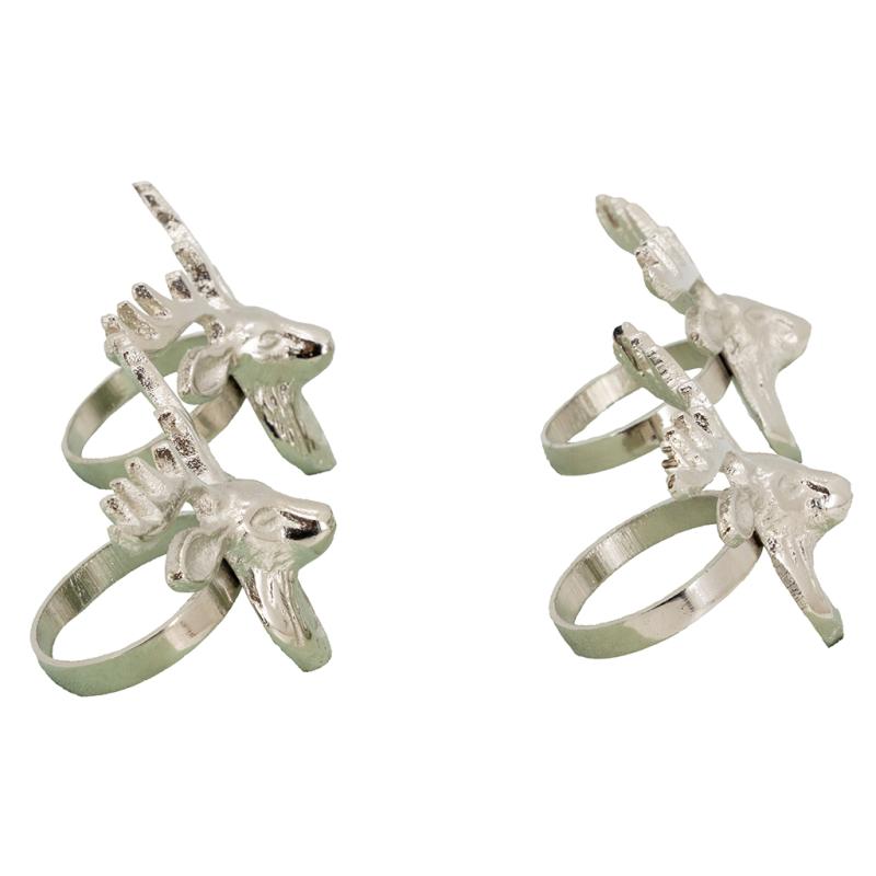 Boite de 4 ronds de serviettes en aluminium Forme tête de cerf. Dim : 7x7x50cm
