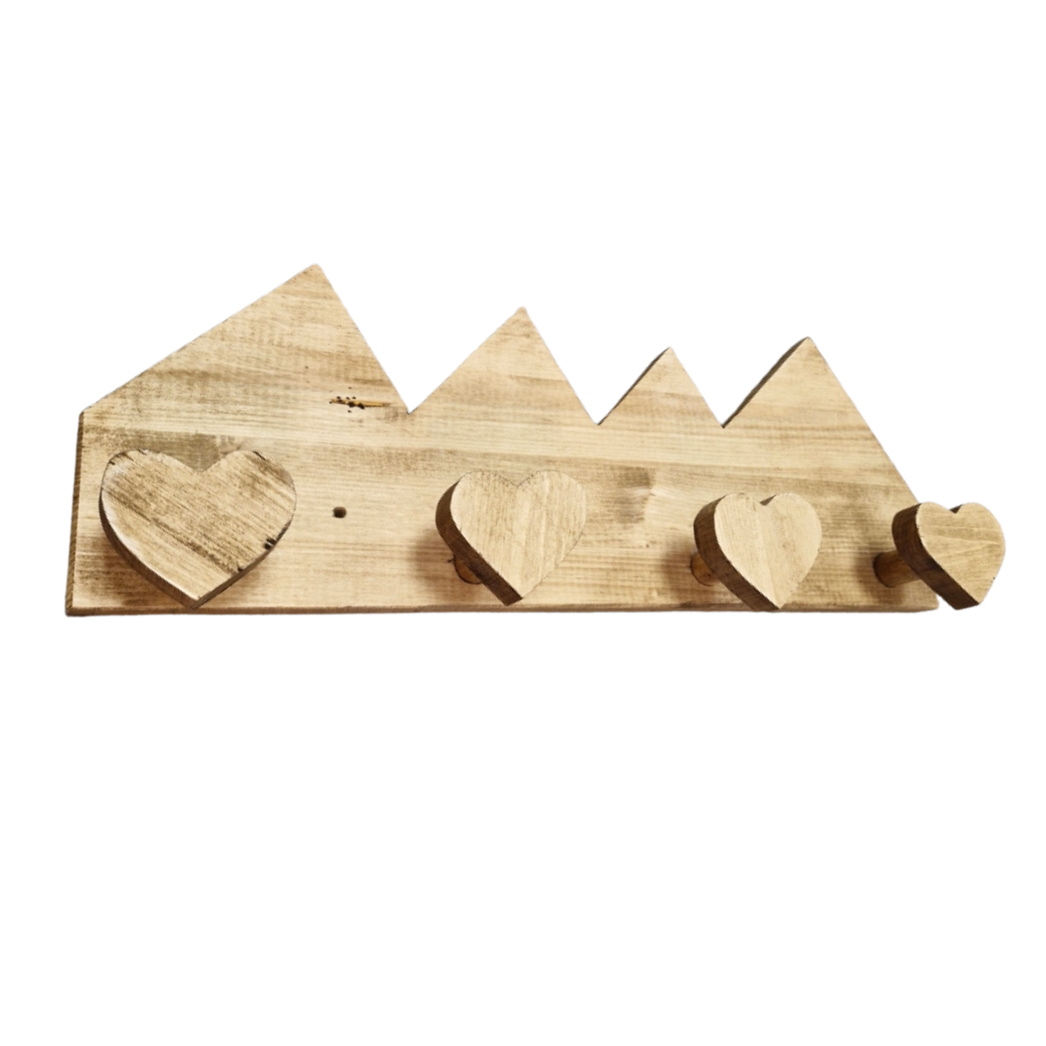 Patère murale avec 4 têtes cœur en forme de montagnes.