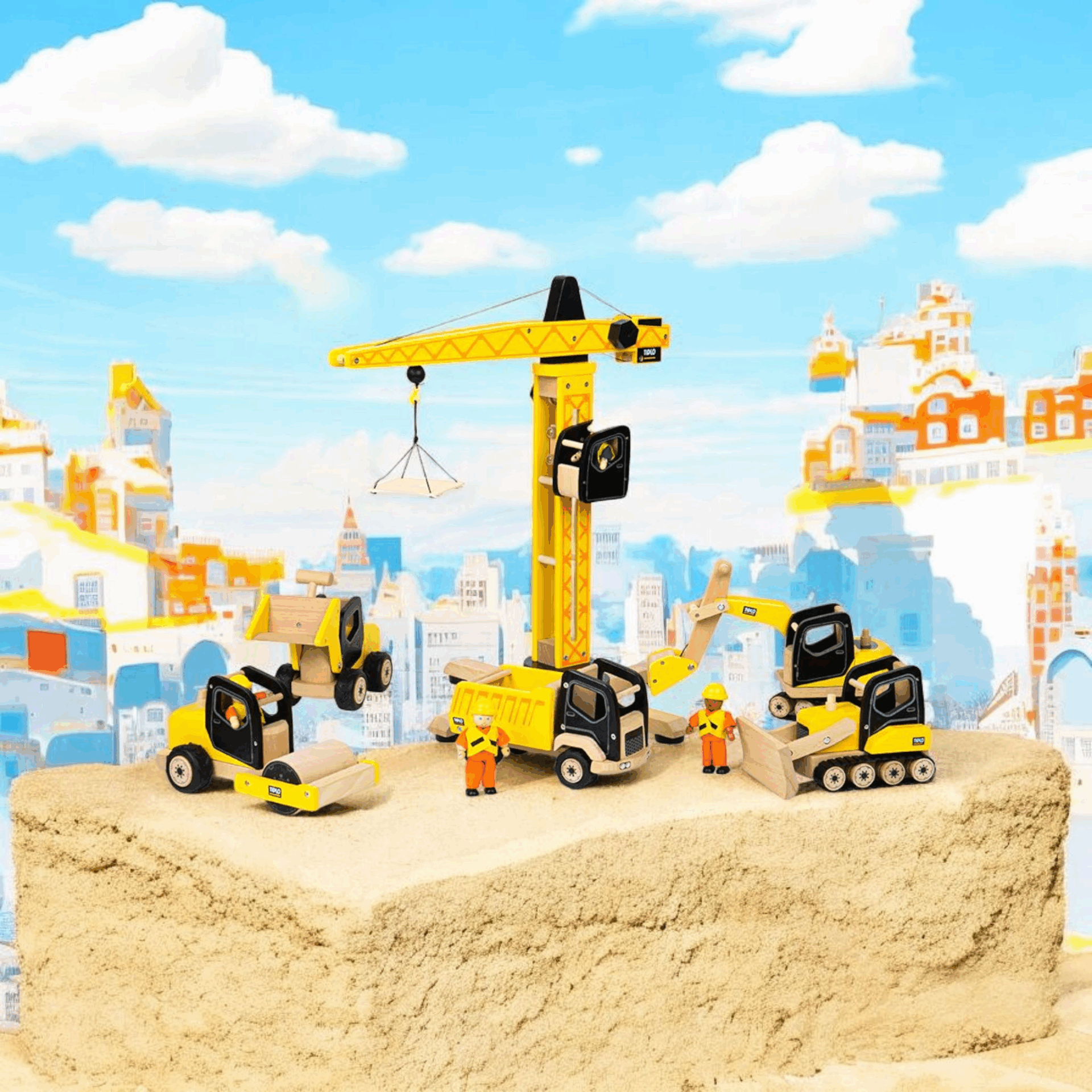Nos figurines de construction en bois sont idéales pour gérer un chantier dynamique. Prêts à travailler, ces ouvriers sont vêtus de leurs gilets haute visibilité et de leurs casques de chantier.